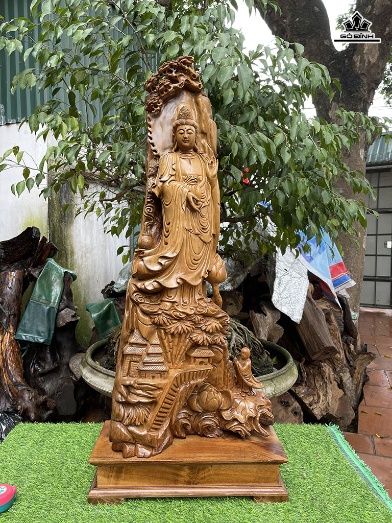 Tượng Phật Bà Quán Thế Âm Bồ Tát Gỗ Bách Xanh Cao Cả Kỷ 108 Ngang 42 Sâu 26 (cm)