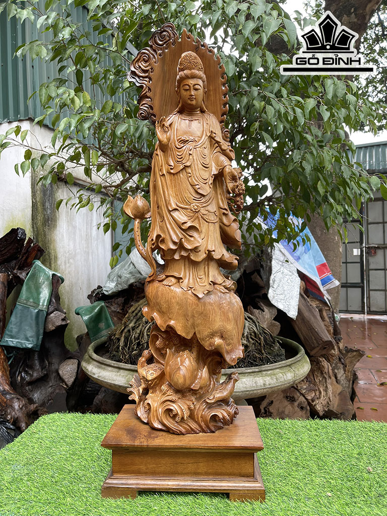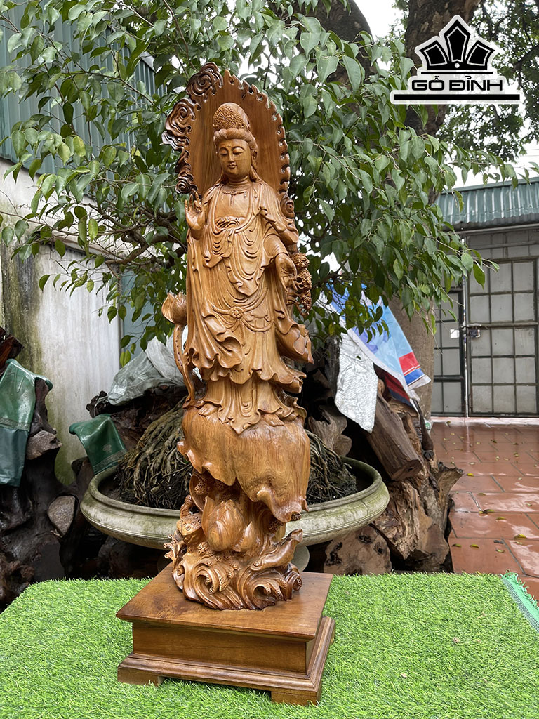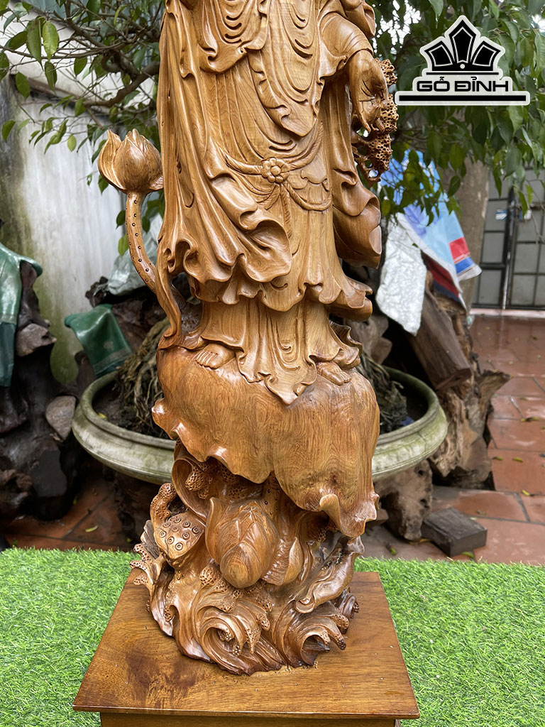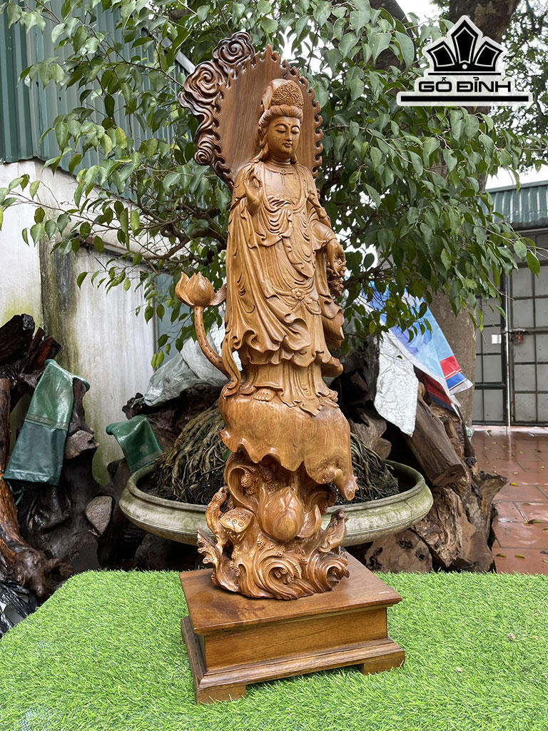 Tượng Phật Bà Quán Thế Âm Bồ Tát Gỗ Bách Xanh Cao Cả Kỷ 98 Ngang 28 Sâu 20 (cm)