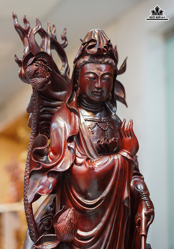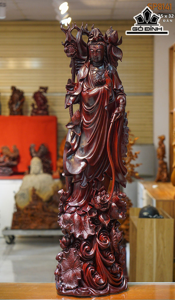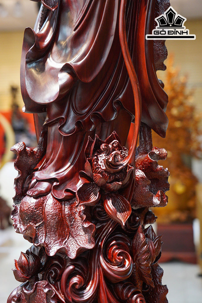 Tượng Phật Bà Quán Thế Âm Gỗ Tử Đàn Cao 117 Ngang 35 Sâu 32 (cm)