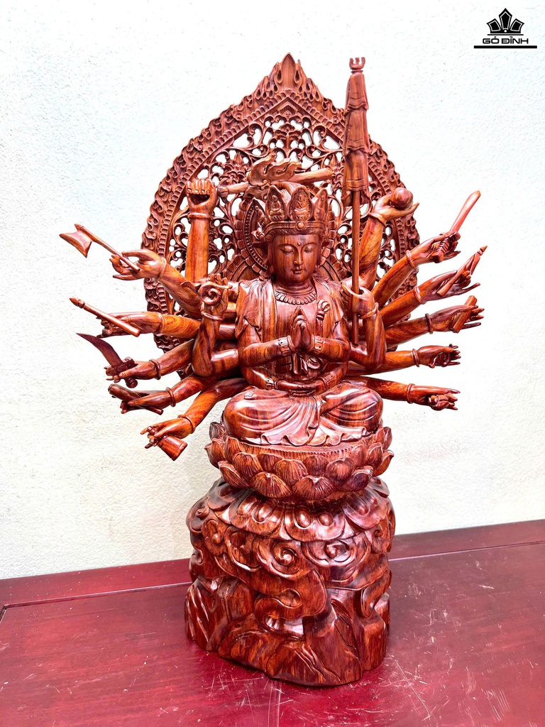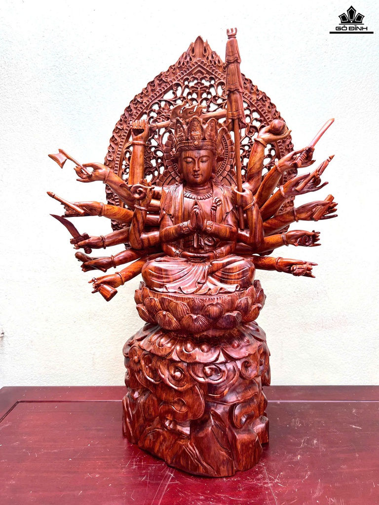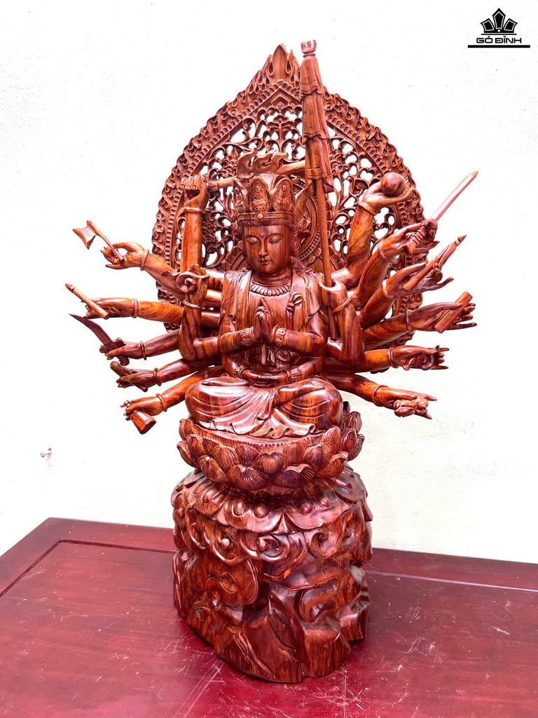 Tượng Phật Chuẩn Đề Gỗ Sưa Cao 50 Ngang 34 Sâu 18 (cm)