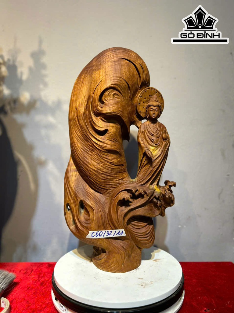 Tượng Phật Đại Thế Chí Bồ Tát Gỗ Gõ Cao 60 Ngang 32 Sâu 11 (cm)