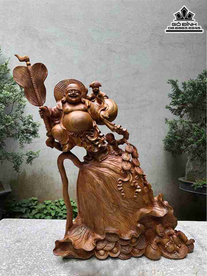 Tượng Phật Di Lặc Bay Gỗ Xá Xị ( Gù Hương ) Cao 76 Ngang 70 Sâu 30 (cm)
