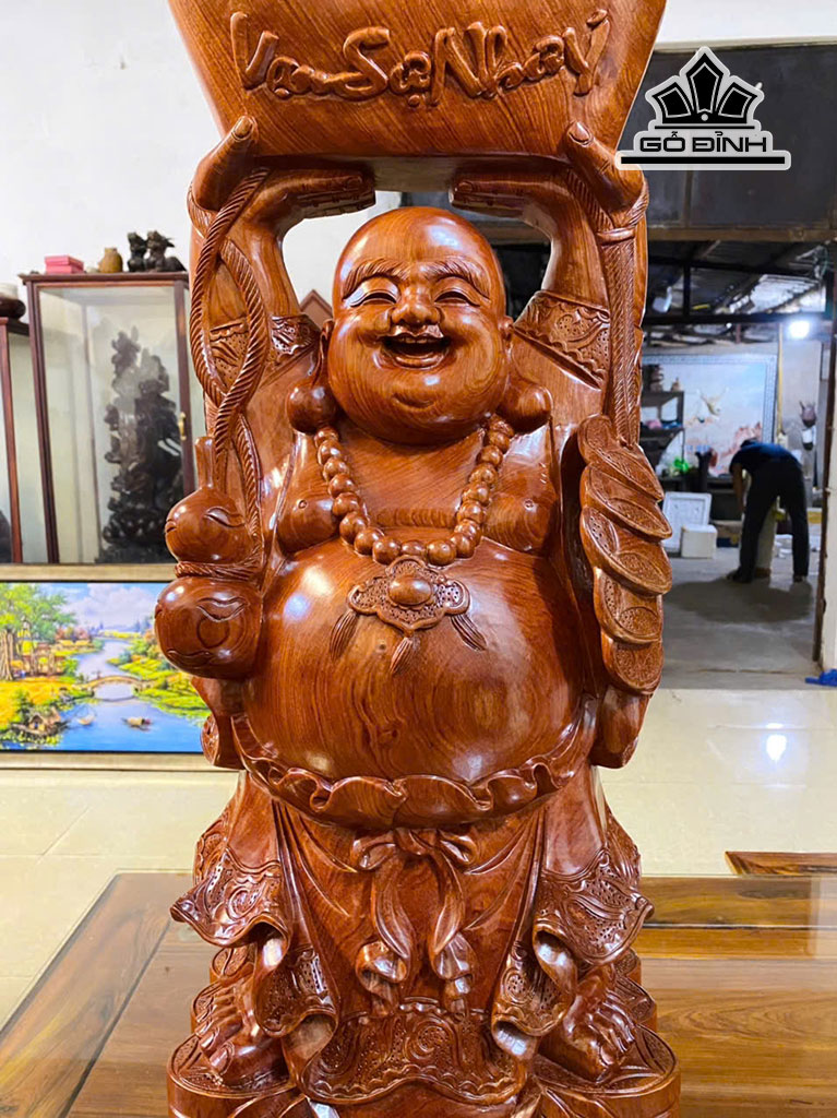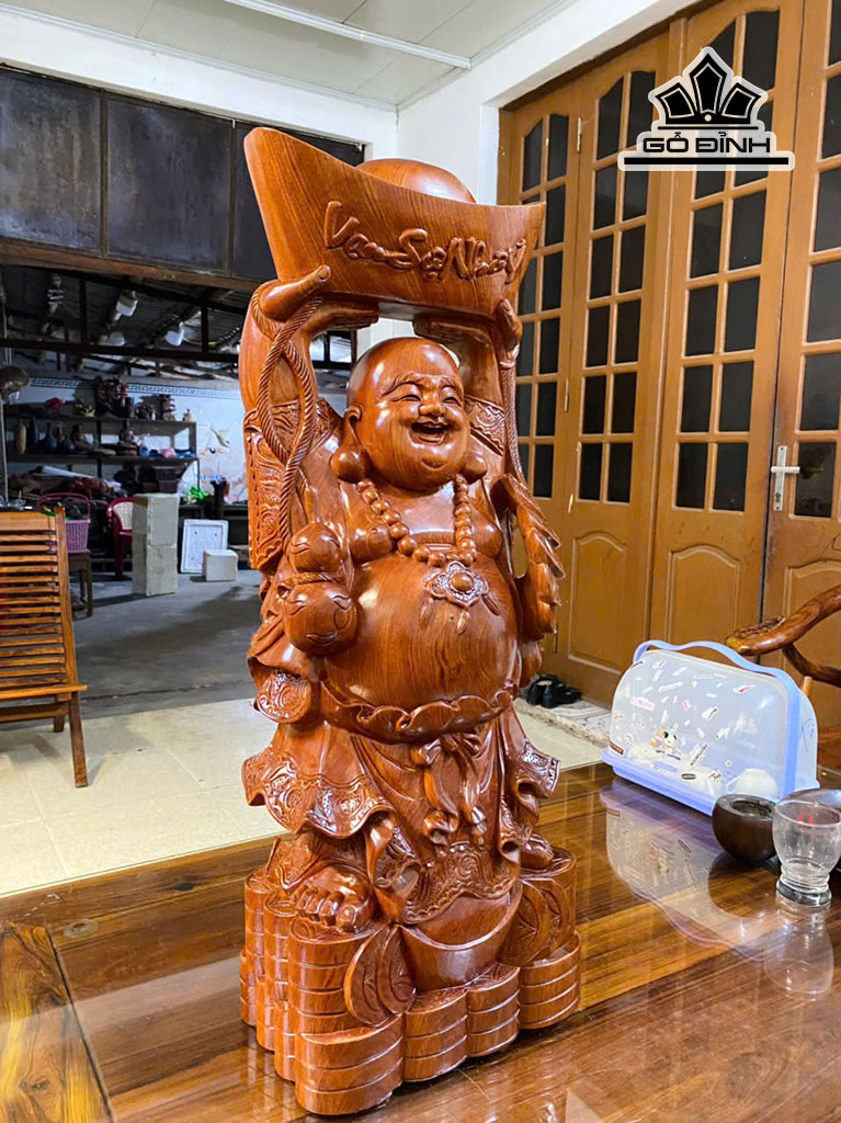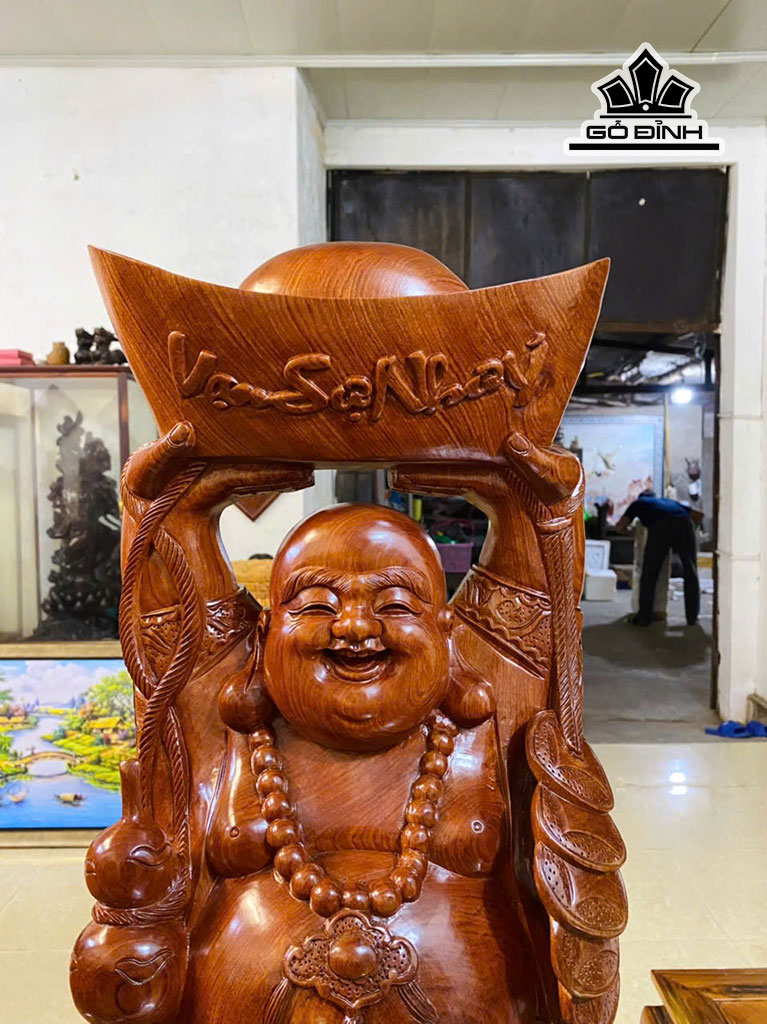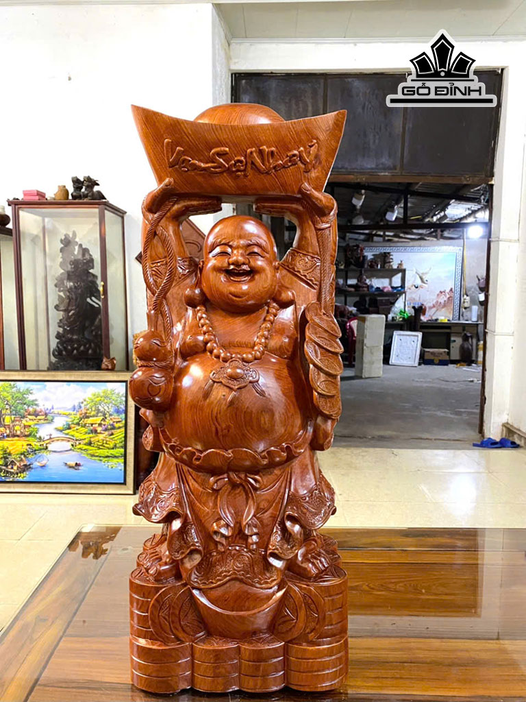 Tượng Phật Di Lặc Bê Thỏi Vàng Gỗ Hương Cao 80 Ngang 30 Sâu 19 (cm)