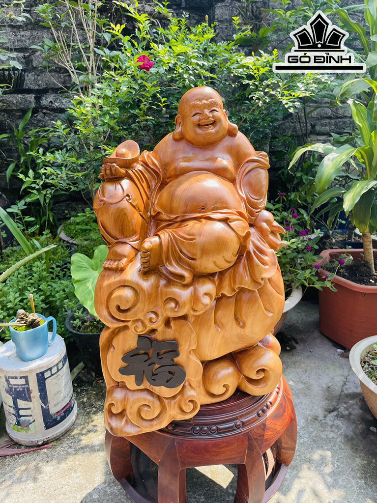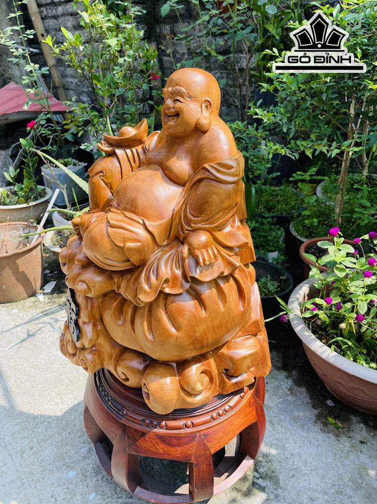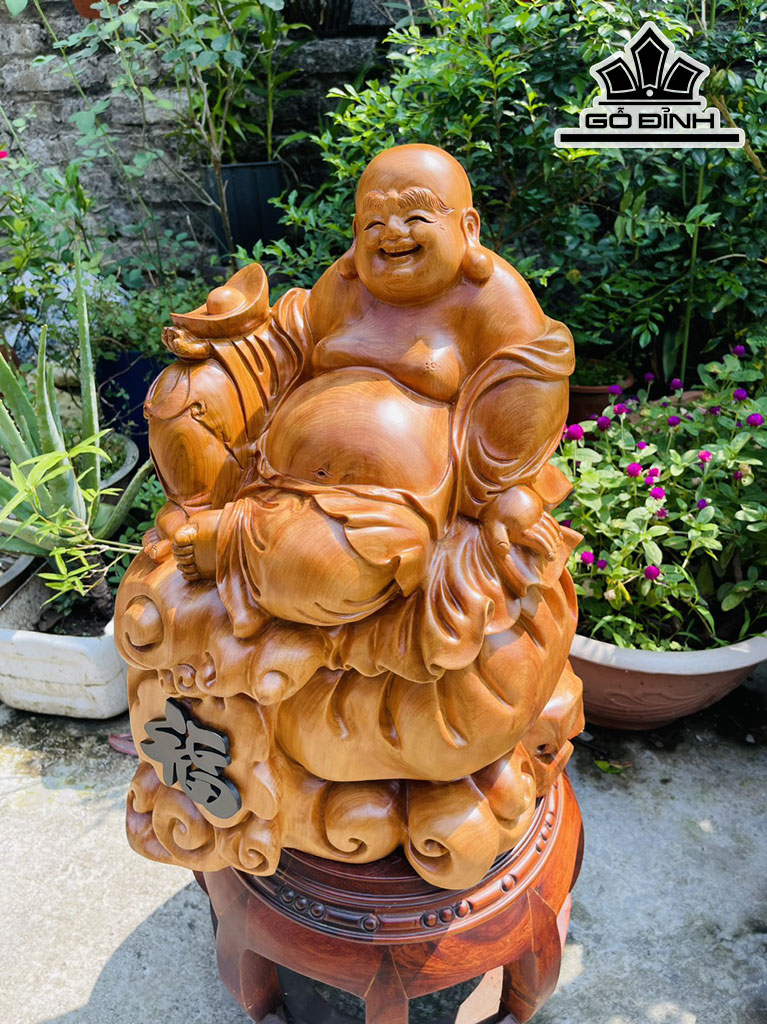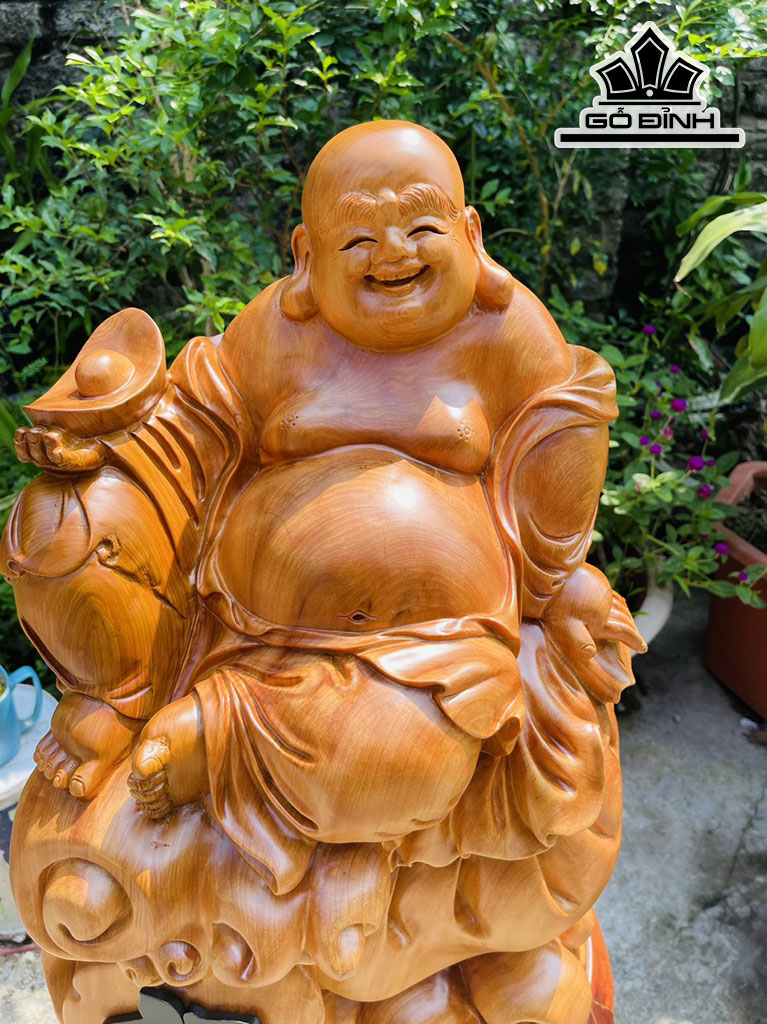 Tượng Phật Di Lặc Bê Thỏi Vàng Gỗ Ngọc Am Cao 43 Ngang 40 Sâu 33 (cm)