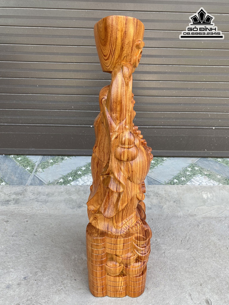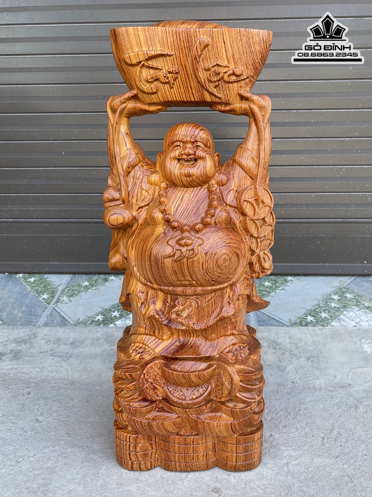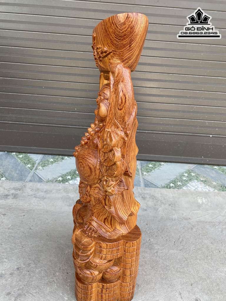 Tượng Phật Di Lặc Bê Vàng Gỗ Hương Cao 59 Ngang 21 Sâu 14 (cm)