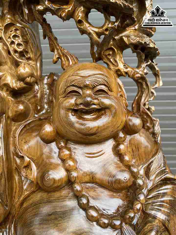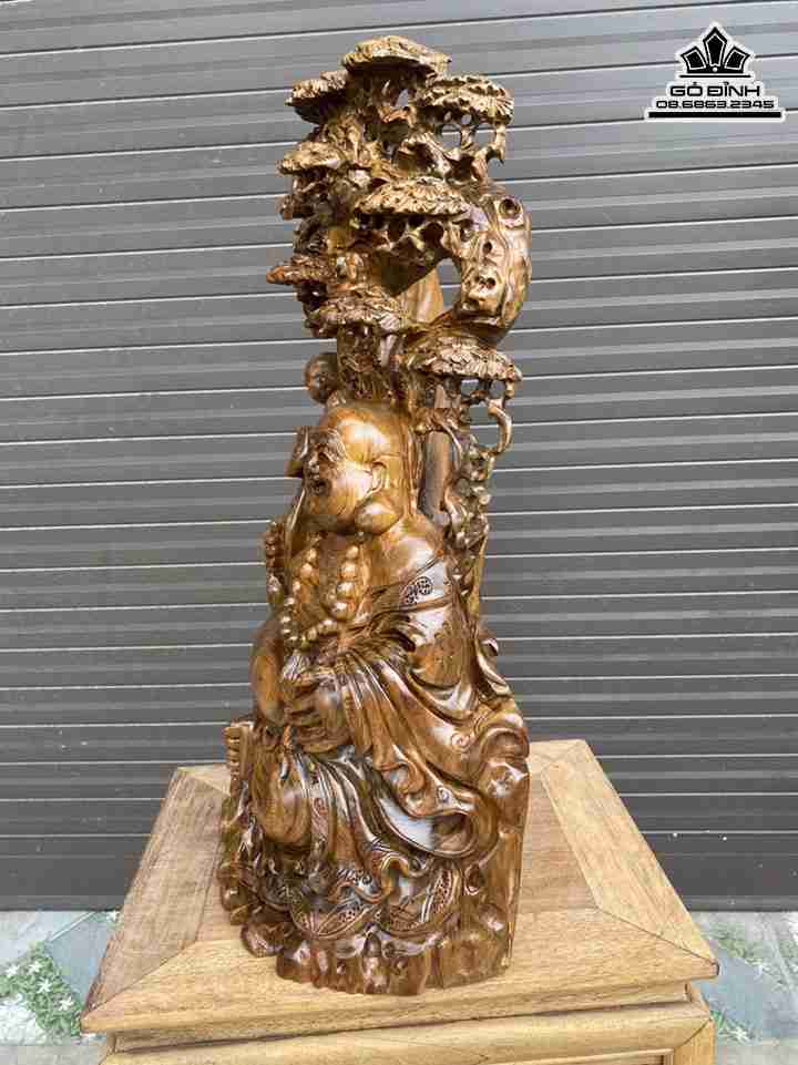 Tượng Phật Di Lặc Cầm Gậy Như Ý Gỗ Bách Xanh Cao 60 Ngang 33 Sâu 23 (cm)