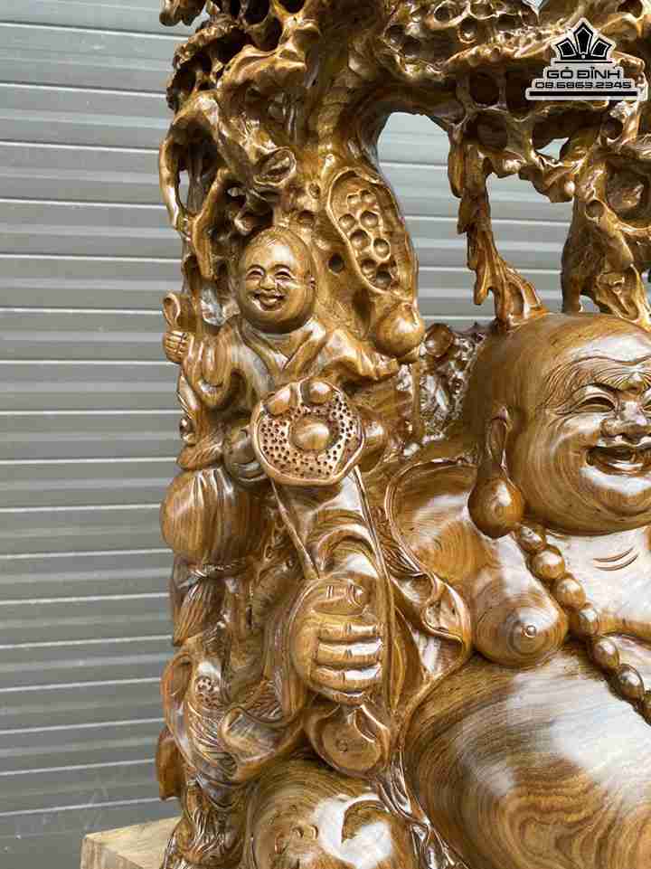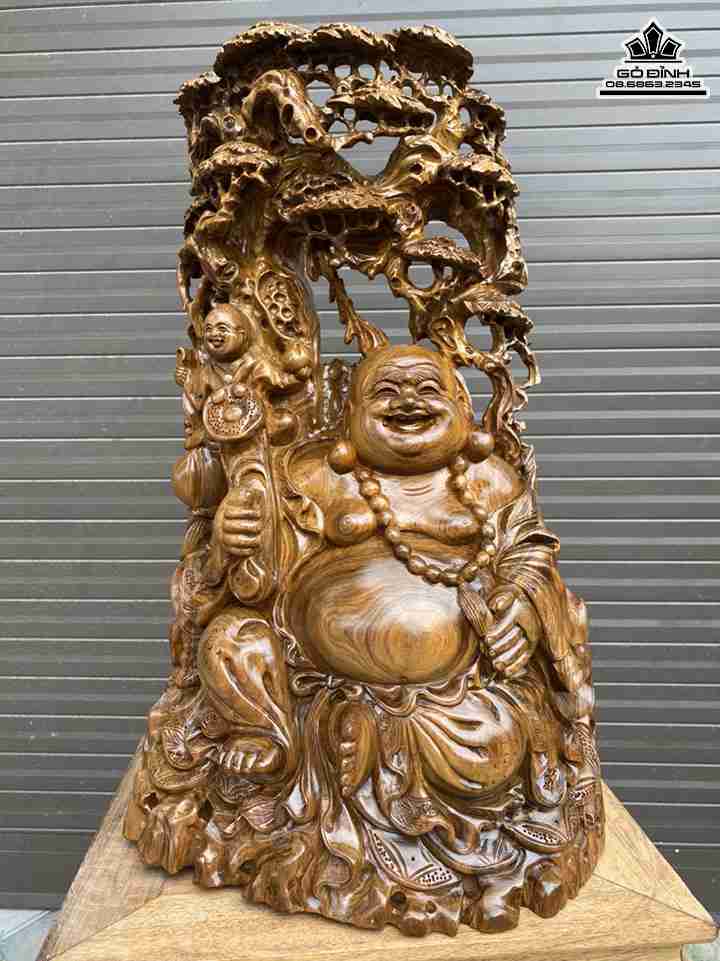 Tượng Phật Di Lặc Cầm Gậy Như Ý Gỗ Bách Xanh