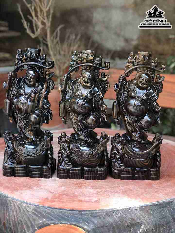 Tượng Phật Di Lặc Cầm Gậy Như Ý Gỗ Mun Hoa Cao 40 Ngang 18 Sâu 10 (cm)
