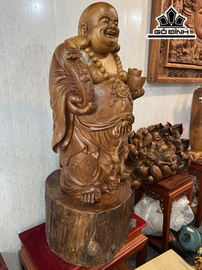 Tượng Phật Di Lặc Cầm Thỏi Vàng Gỗ Ngọc Am Cao 105 Ngang 48 Sâu 44 (cm)