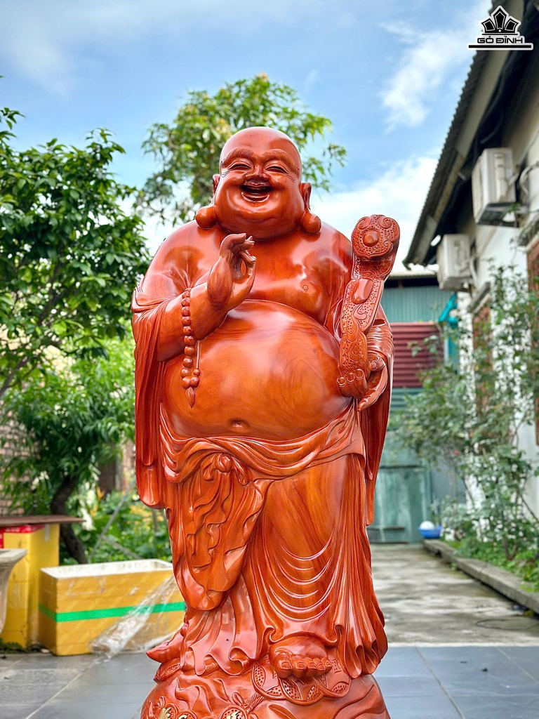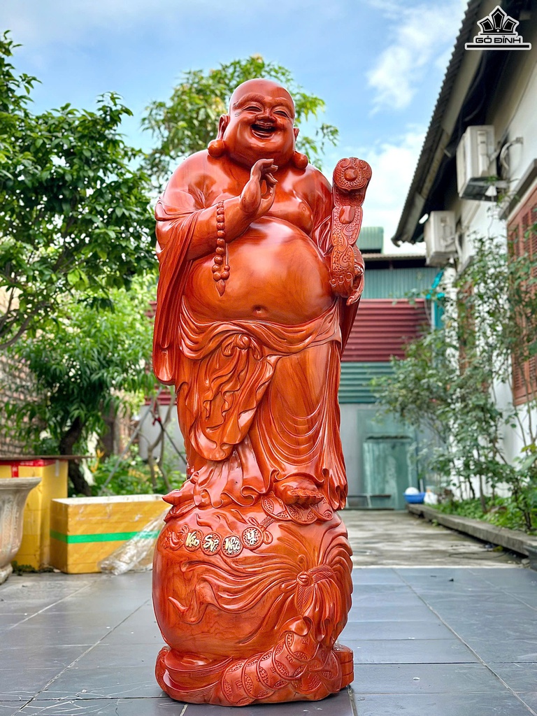 Tượng Phật Di Lặc Cầu Phúc Gỗ Hương Cao 160 Ngang 50 Sâu 40 (cm)
