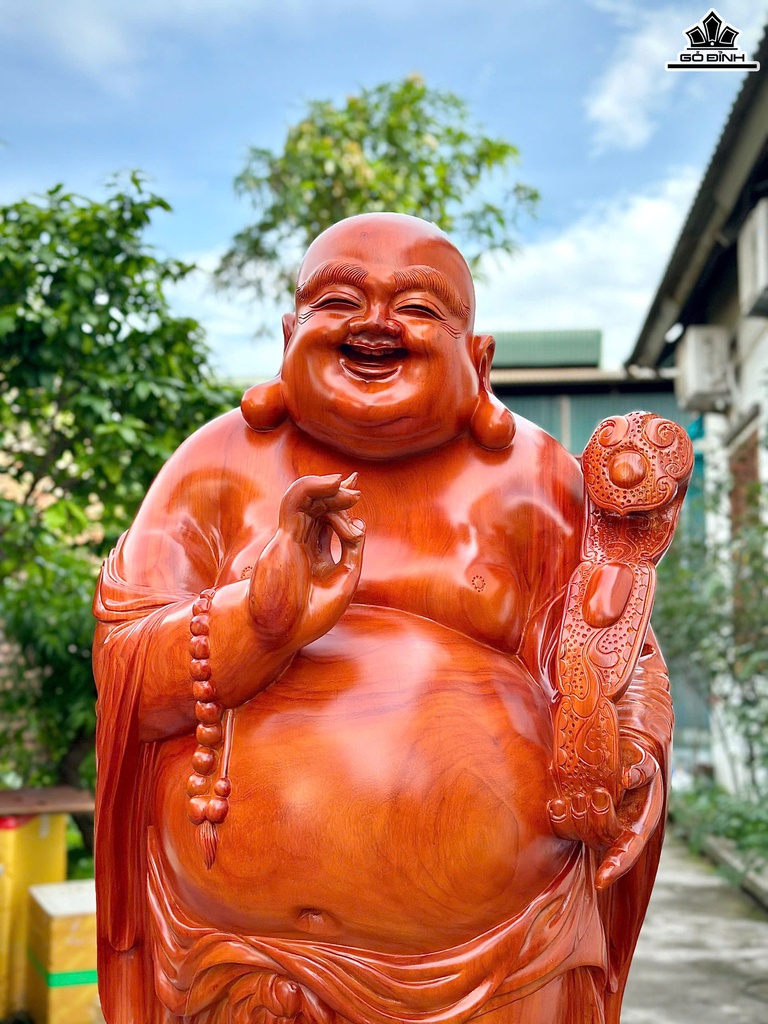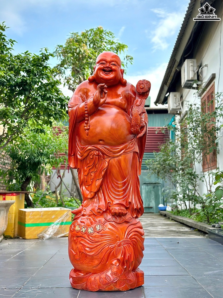 Tượng Phật Di Lặc Cầu Phúc Gỗ Hương Cao 160 Ngang 50 Sâu 40 (cm)