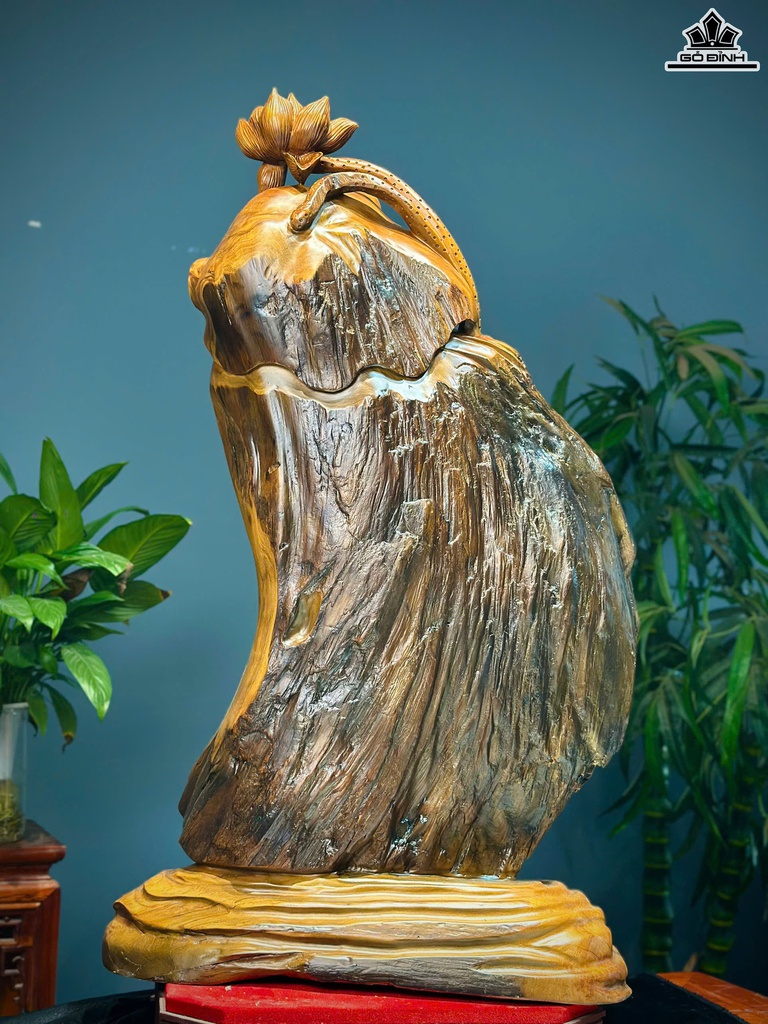 Tượng Phật Di Lặc Cầu Phúc Gỗ Ngọc Am Cao 84 Ngang 48 Sâu 24 (cm)