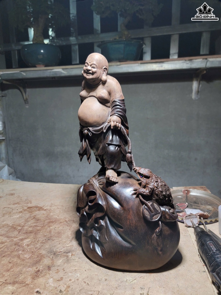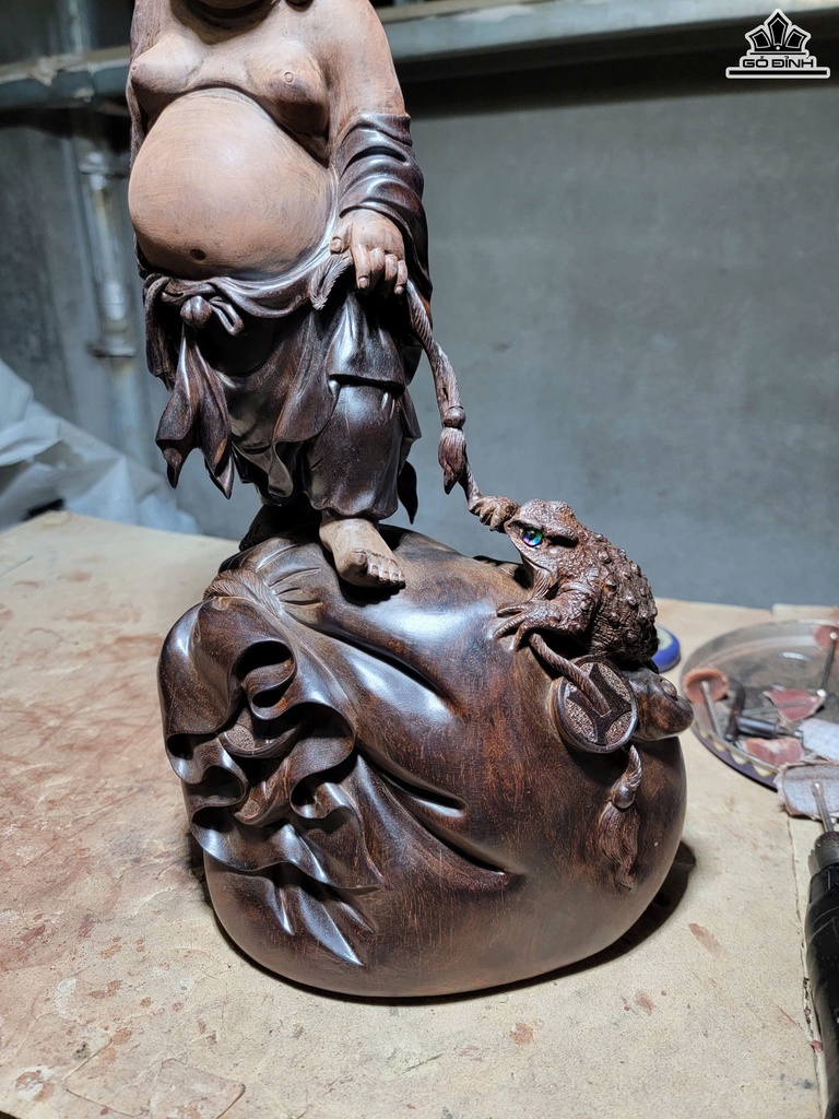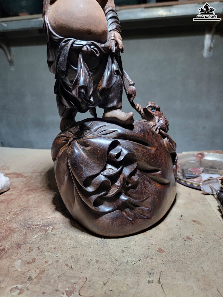 Tượng Phật Di Lặc Câu Thiềm Thừ Gỗ Trắc Cao 36 Ngang 20 Sâu 15 (cm)