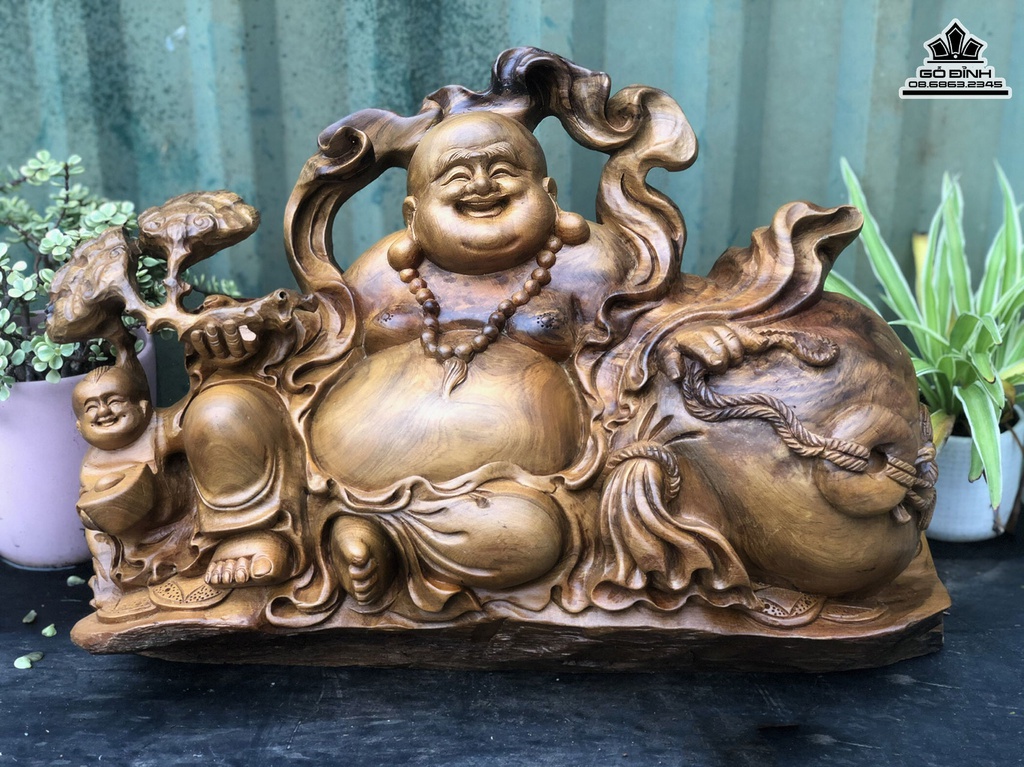 Tượng Phật Di Lặc Chân Bao Tiền Gỗ Bách Xanh Cao 31 Ngang 43 Sâu 20 (cm)