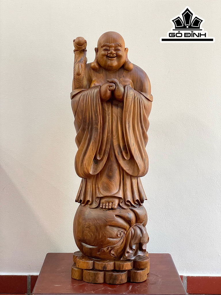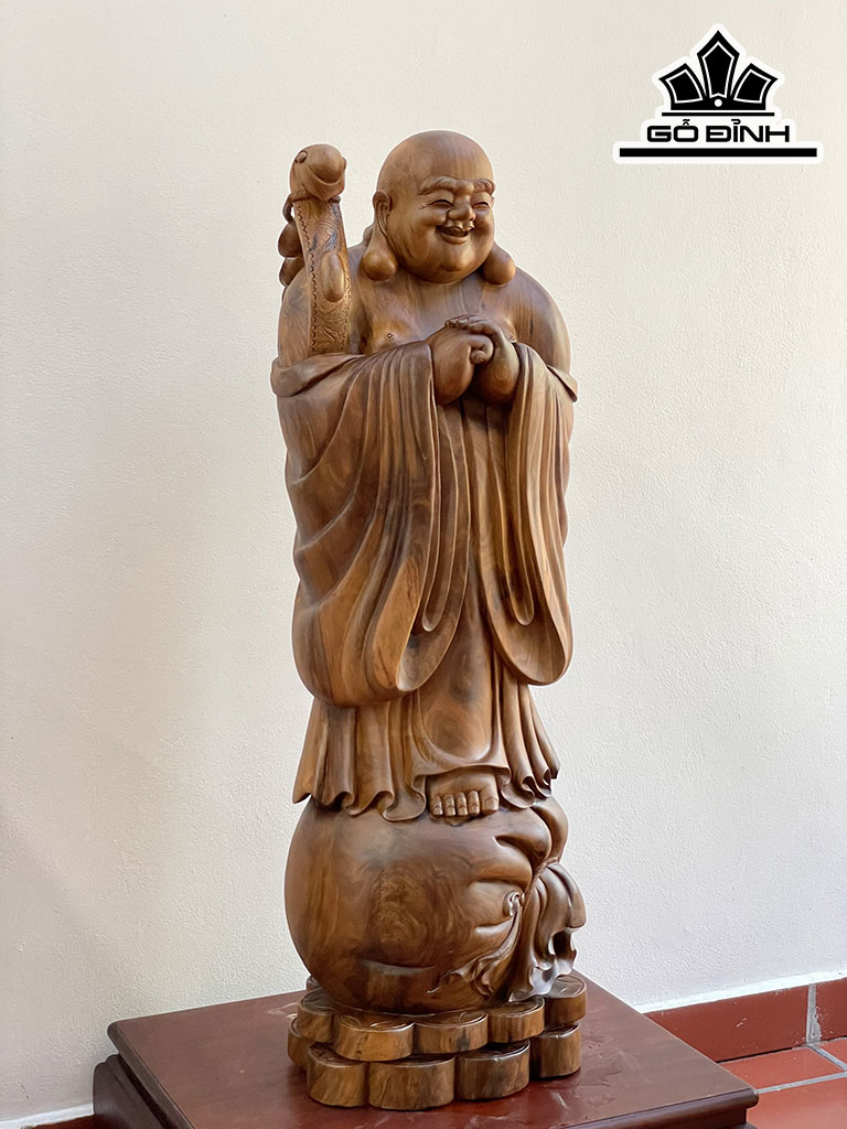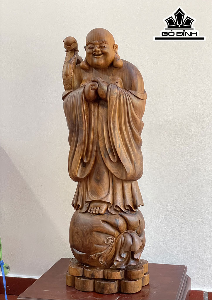 Tượng Phật Di Lặc Chúc Phúc Gỗ Bách Xanh Cao 110 Ngang 36 Sâu 28 (cm)