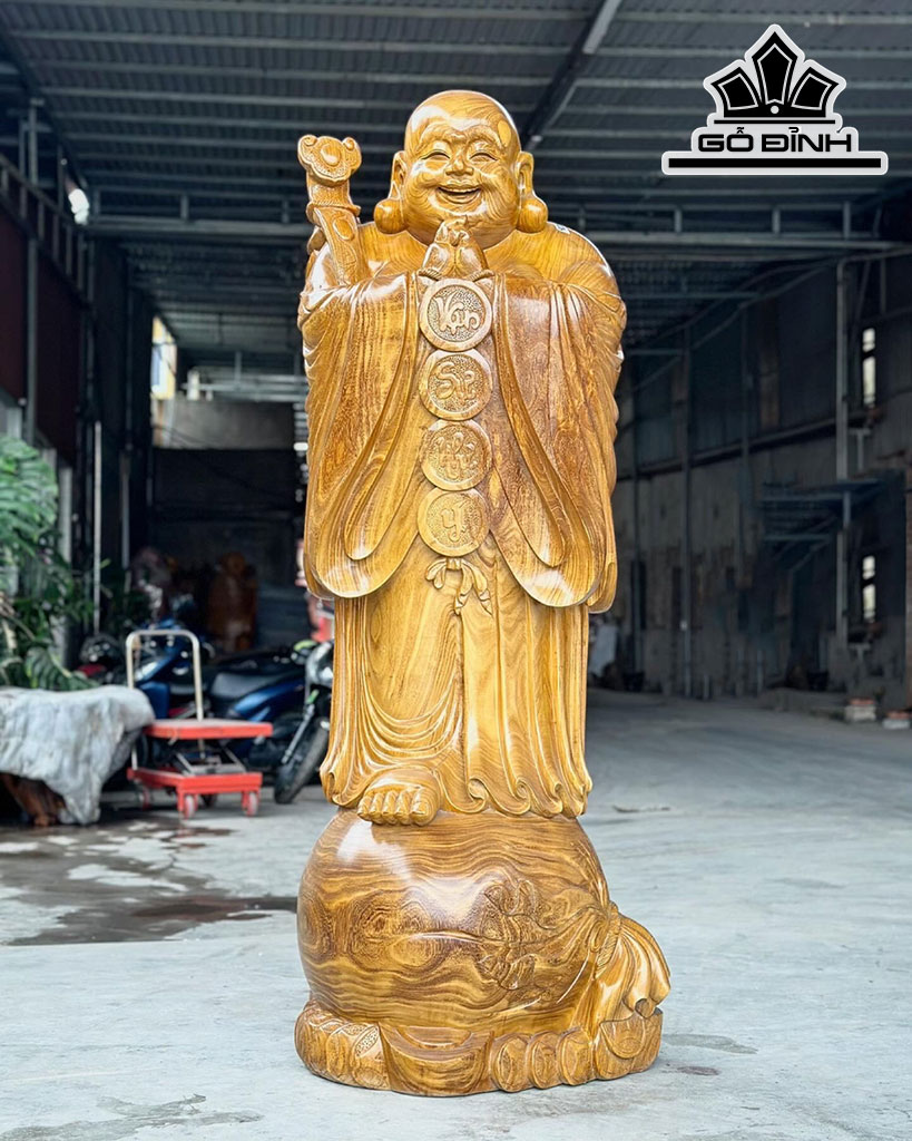 Tượng Phật Di Lặc Chúc Phúc Gỗ Cẩm Vàng Cao 170 Ngang 52 Sâu 50 (cm)