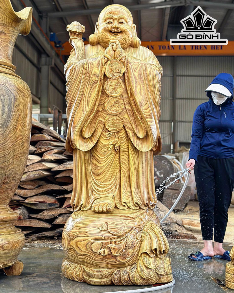 Tượng Phật Di Lặc Chúc Phúc Gỗ Cẩm Vàng Cao 180 Ngang 66 Sâu 60 (cm)