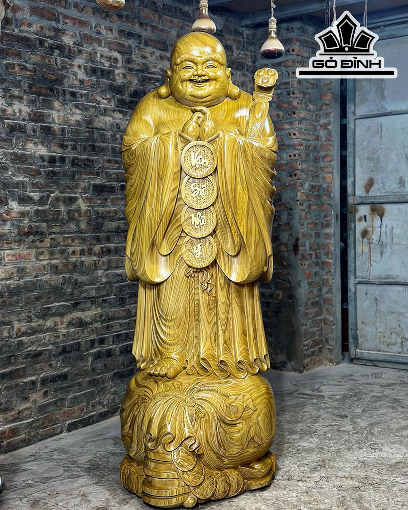 Tượng Phật Di Lặc Chúc Phúc Gỗ Cẩm Vàng Cao 200 Ngang 65 Sâu 70 (cm)