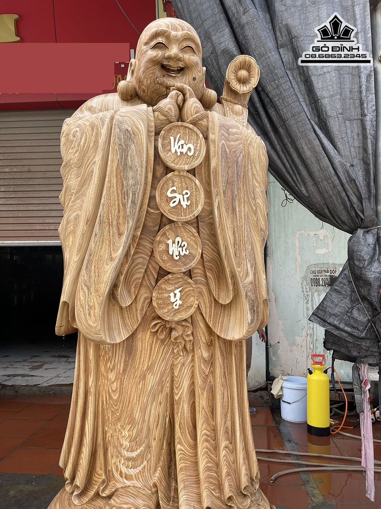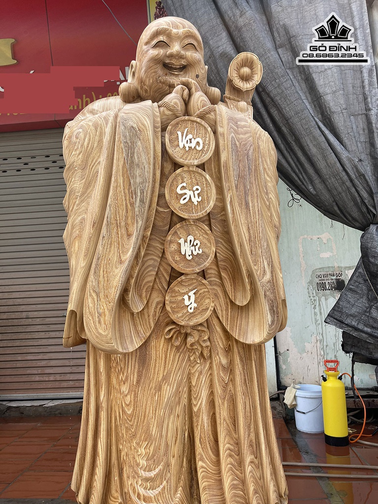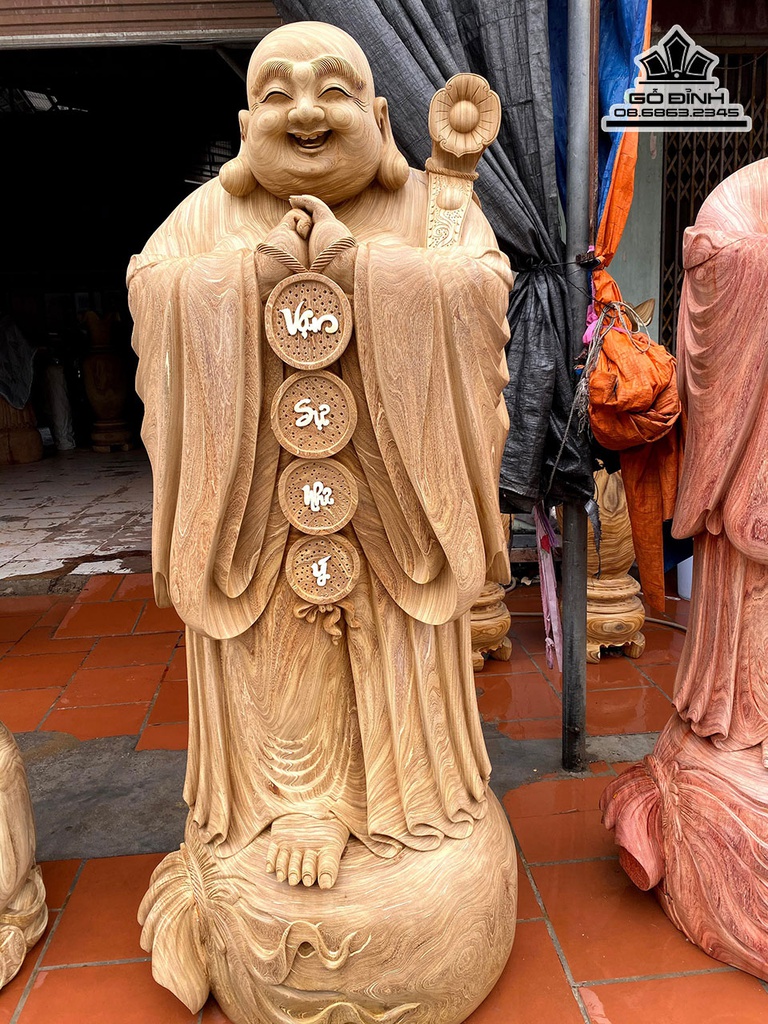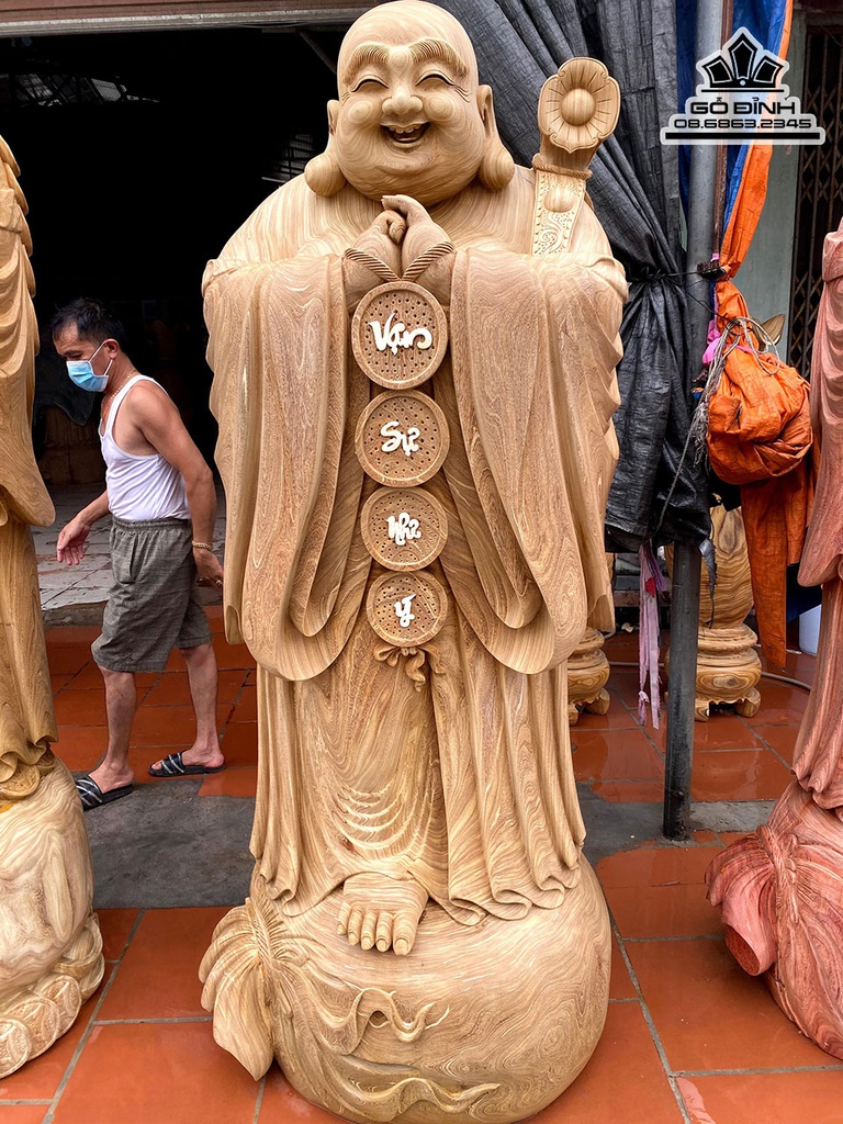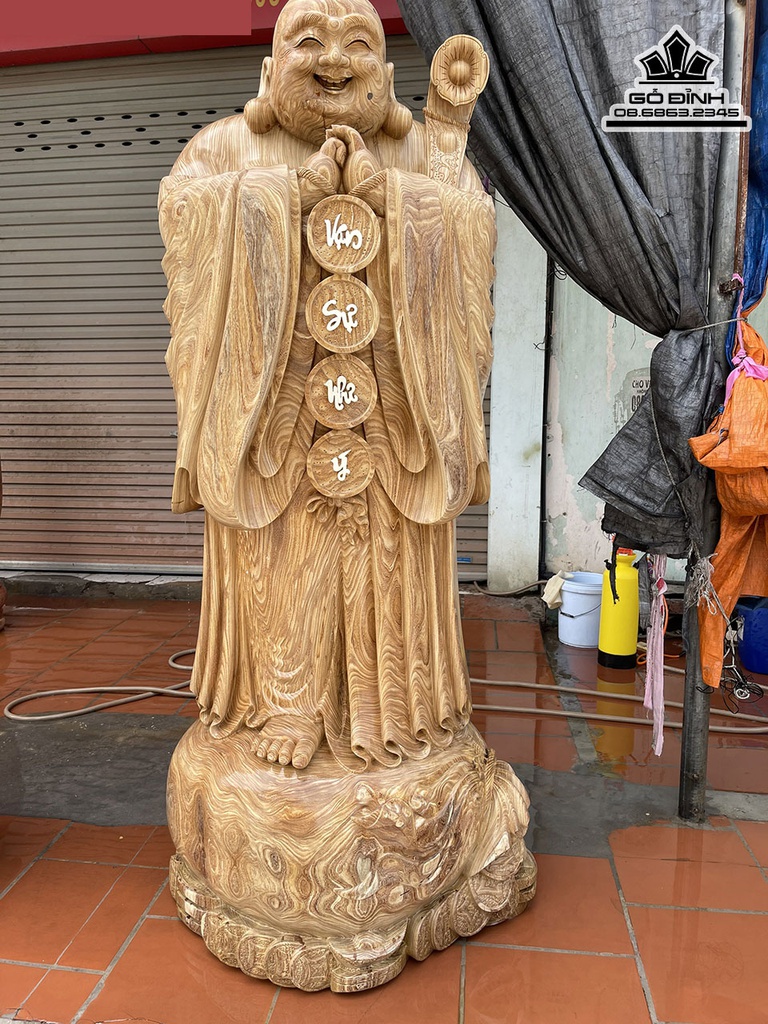 Tượng Phật Di Lặc Chúc Phúc Gỗ Cẩm Vàng Cao 220 Đường Kính 75 (cm)