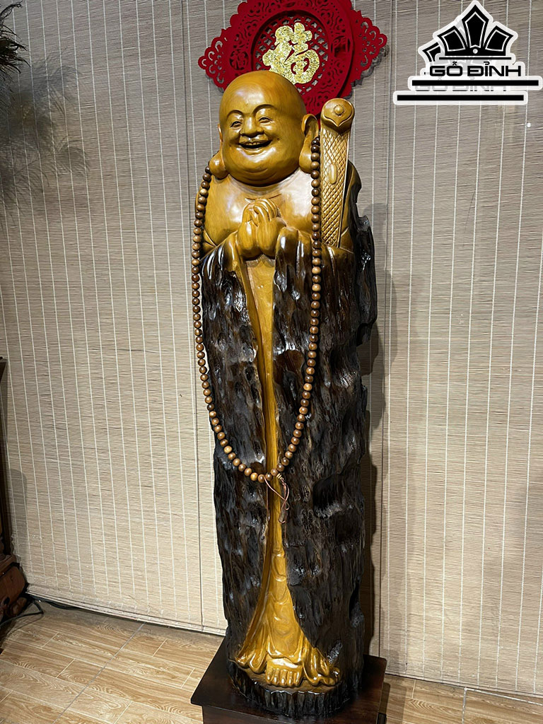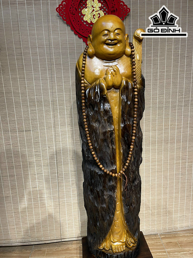 Tượng Phật Di Lặc Chúc Phúc Gỗ Dổi Cao 133 Ngang 43 Sâu 20 (cm)