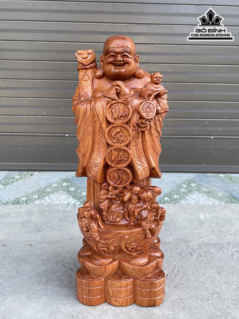 Tượng Phật Di Lặc Chúc Phúc Gỗ Hương Cao 50 Ngang 17.5 Sâu 13.5 (cm)
