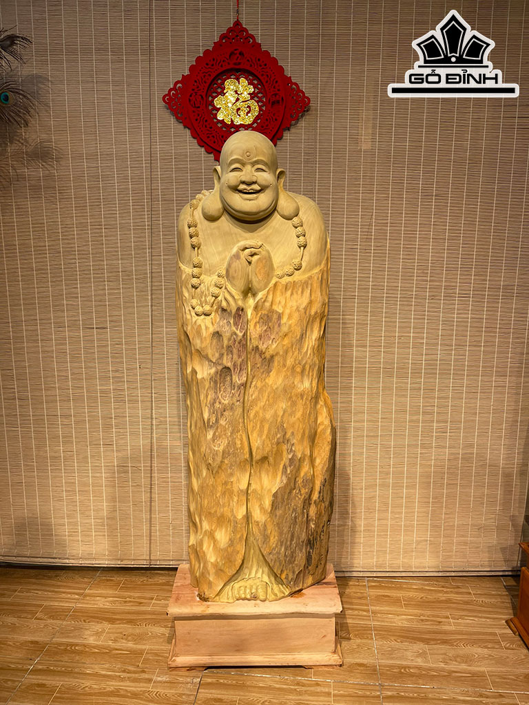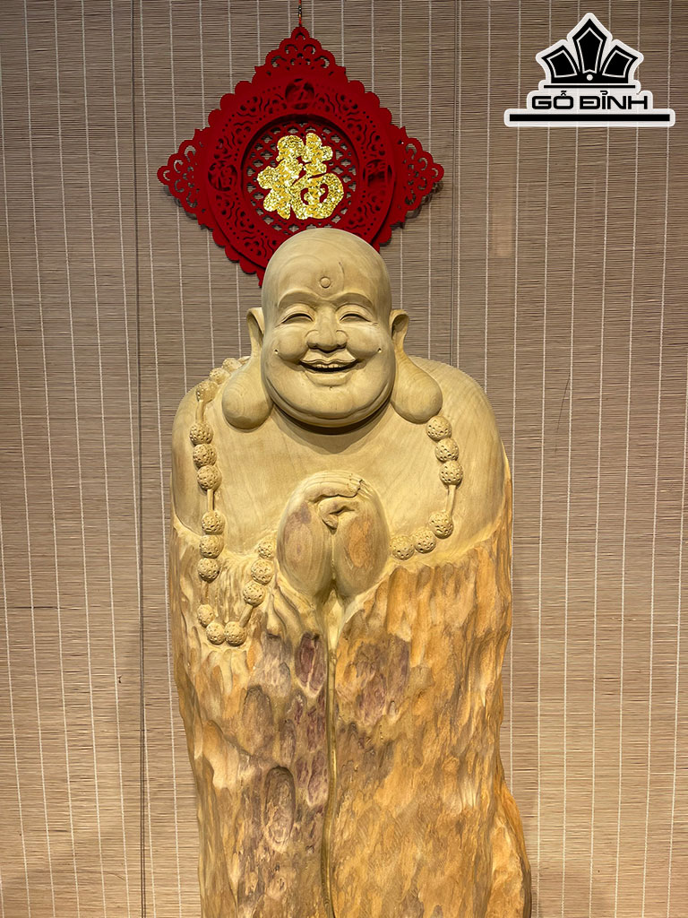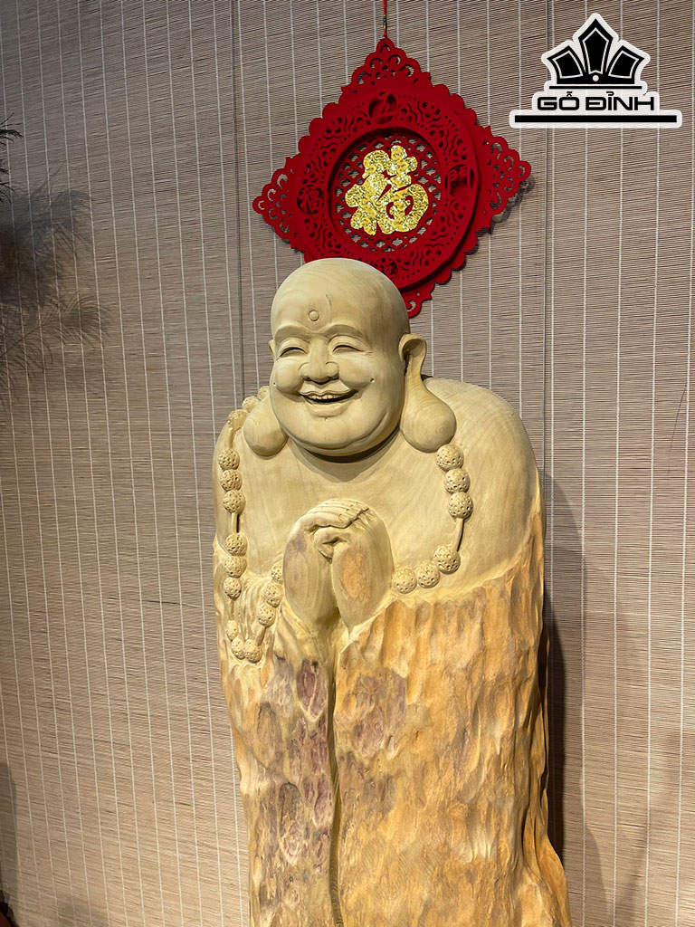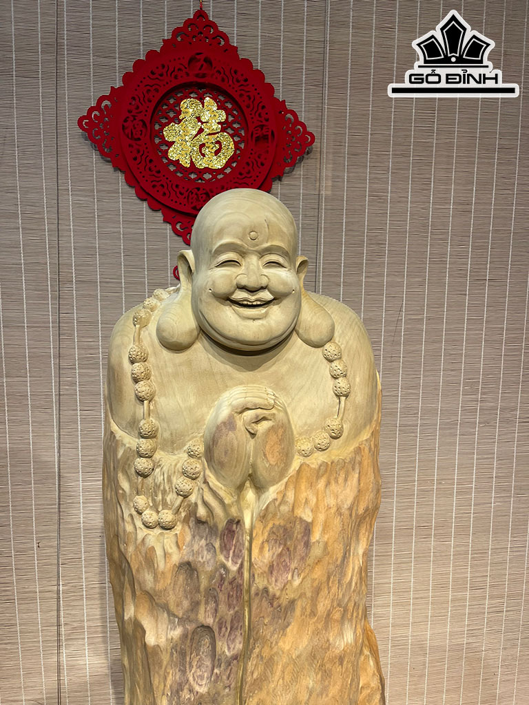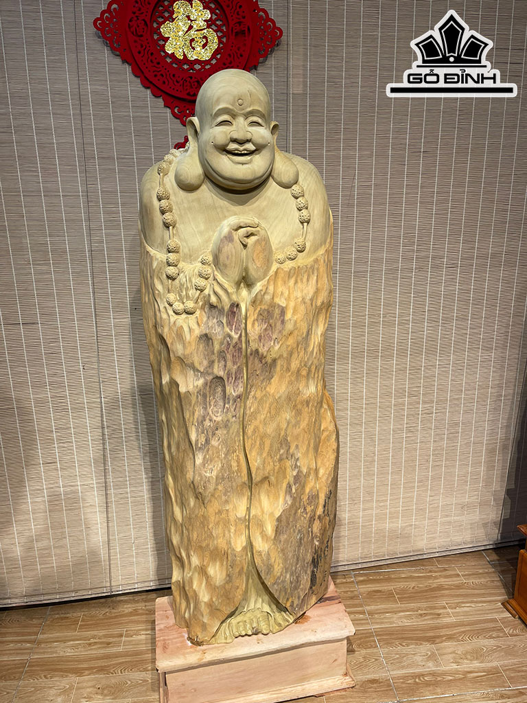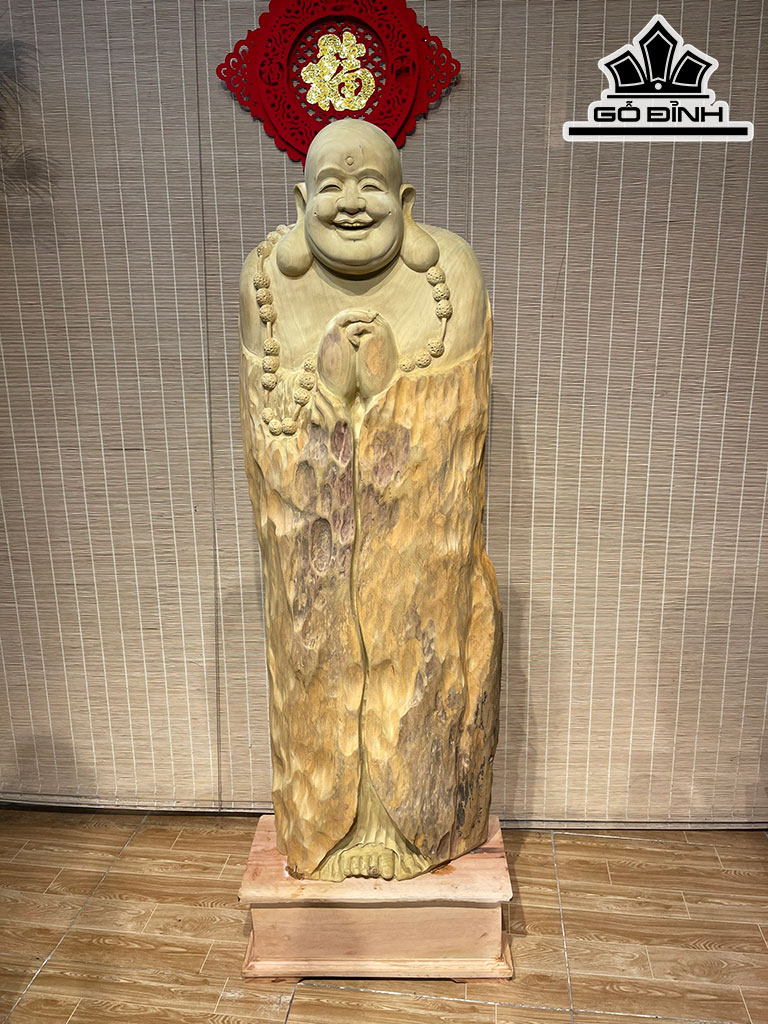Tượng Phật Di Lặc Chúc Phúc Gỗ Lũa Dổi Cao 131 Ngang 45 Sâu 20 Cao Cả Kỷ 151 (cm)