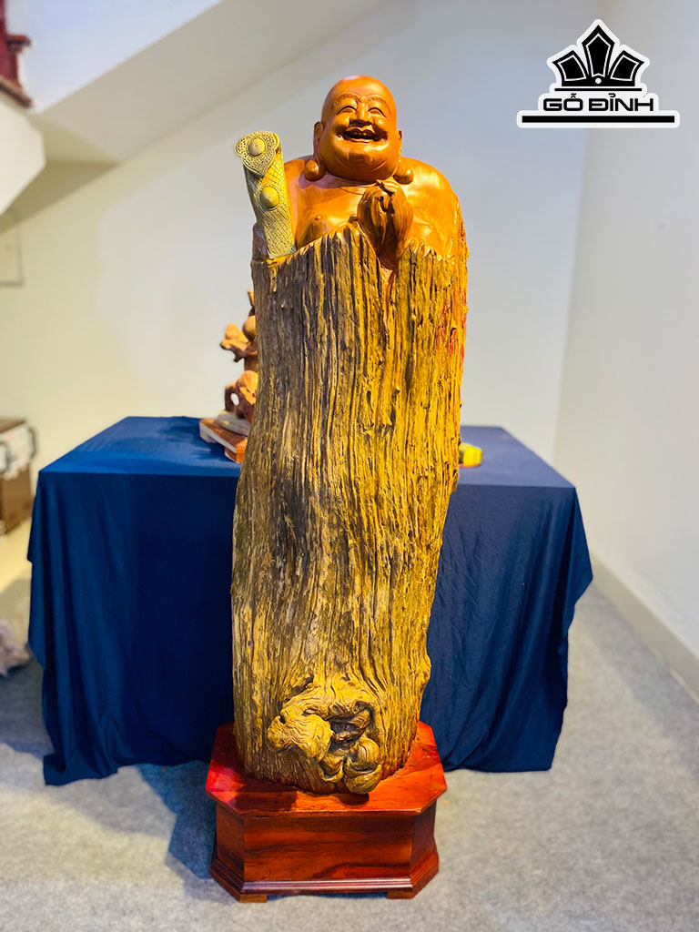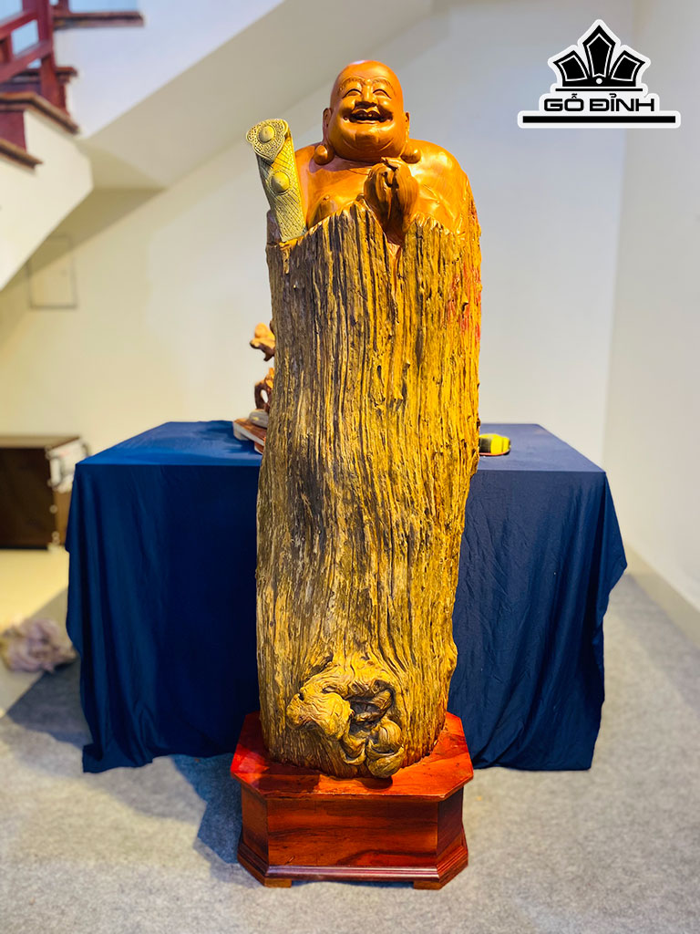 Tượng Phật Di Lặc Chúc Phúc Gỗ Lũa Dổi Cao 145 Ngang 45 Sâu 35 (cm)