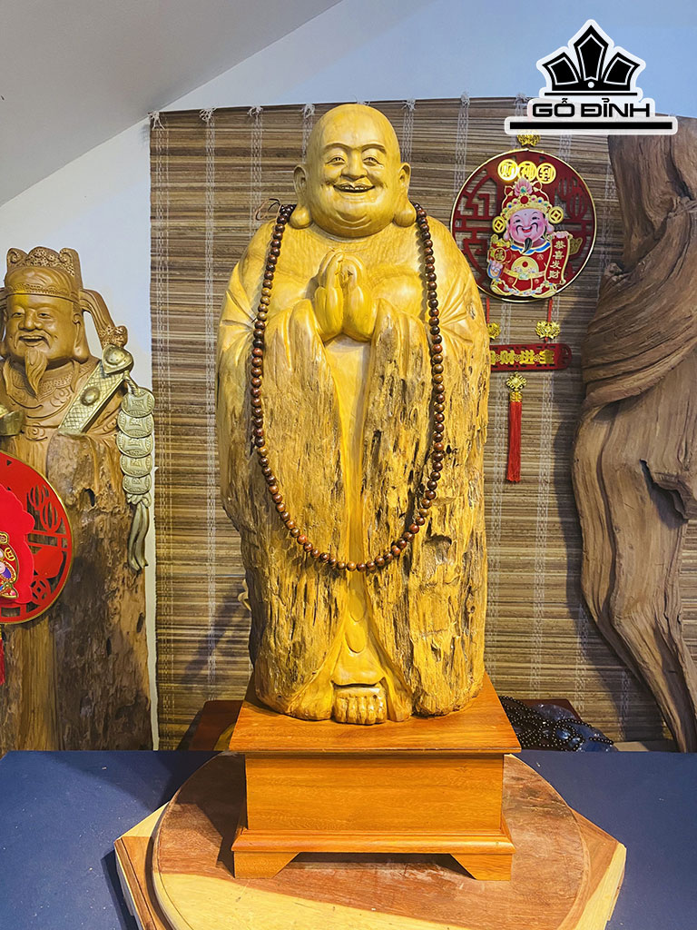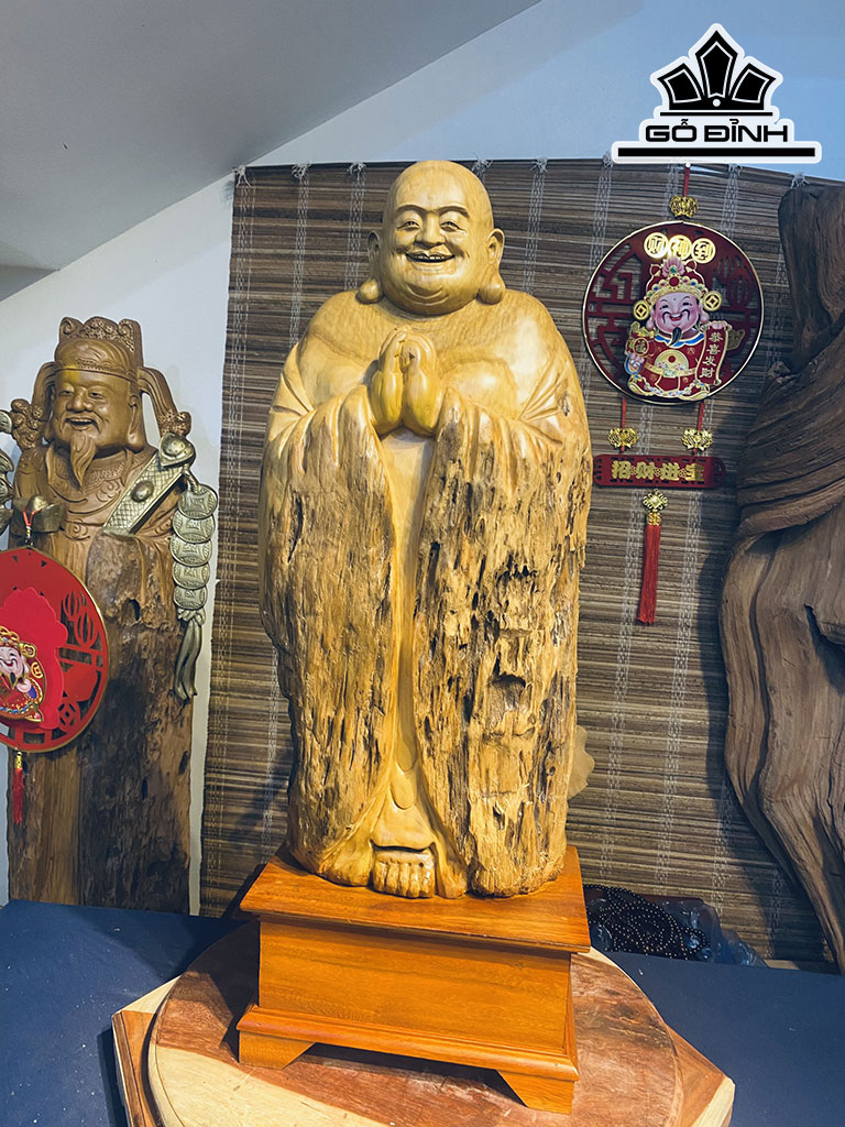 Tượng Phật Di Lặc Chúc Phúc Gỗ Lũa Dổi Cao 80 Ngang 30 Sâu 20 (cm)