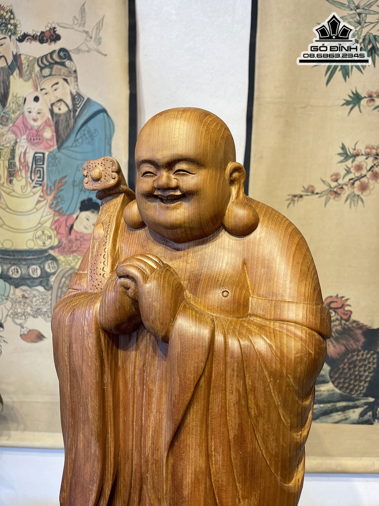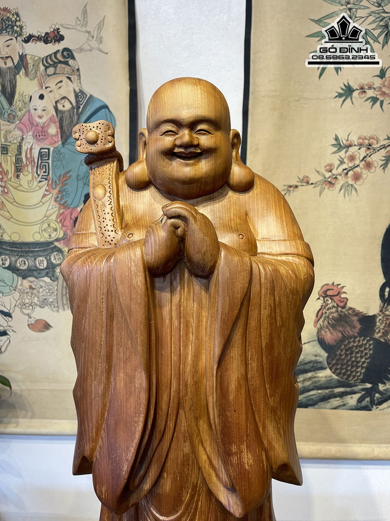 Tượng Phật Di Lặc Chúc Phúc Gỗ Ngọc Am Cao 70 Ngang 26 Sâu 18 (cm)