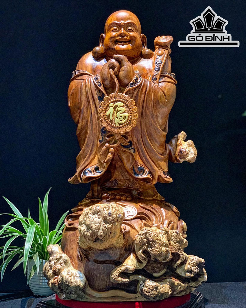 Tượng Phật Di Lặc Chúc Phúc Gỗ Nu Hương Cao 64 Ngang 34 Sâu 36 (cm)