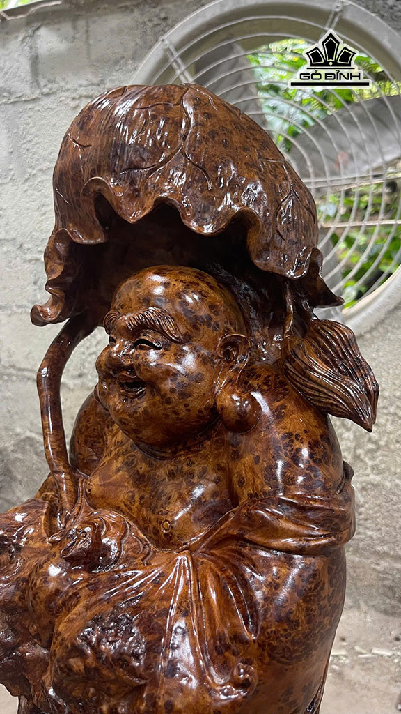 Tượng Phật Di Lặc Chúc Phúc Gỗ Nu Ngọc Am Cao 58 Ngang 24 Sâu 24 (cm)