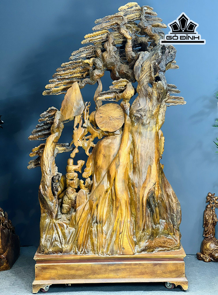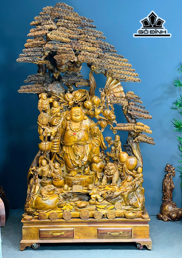 Tượng Phật Di Lặc Cửu Phúc Gỗ Bách Xanh Cao Cả Kỷ 216 Riêng Kỷ Cao 28 Ngang 124 Sâu 64 (cm)