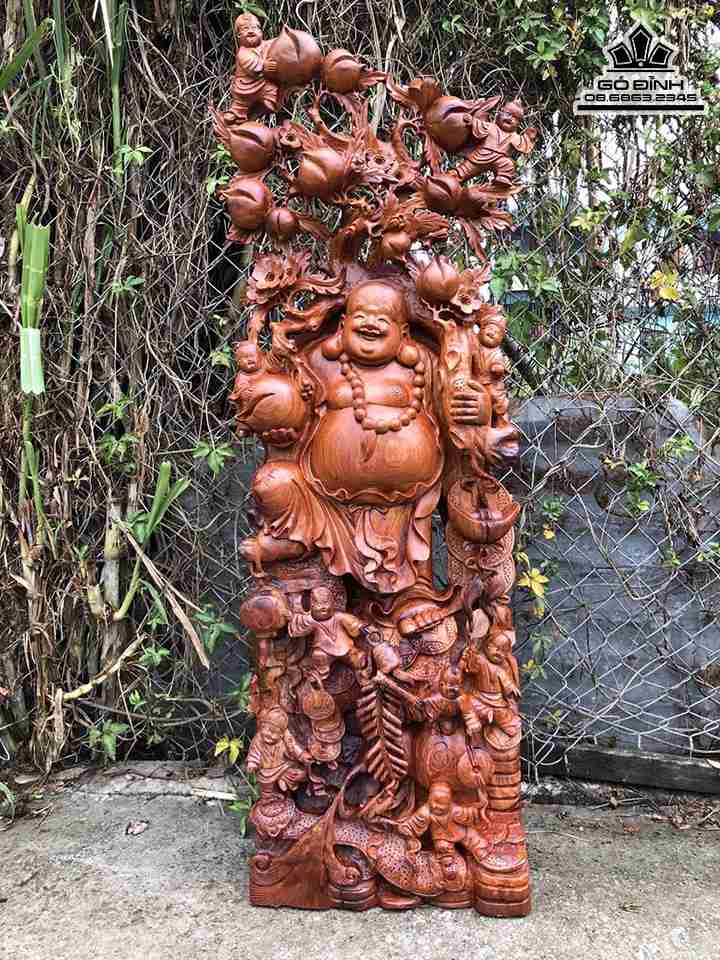 Tượng Phật Di Lặc Cửu Phúc Gỗ Hương Cao 120 Rộng 46 Sâu 18 (cm)