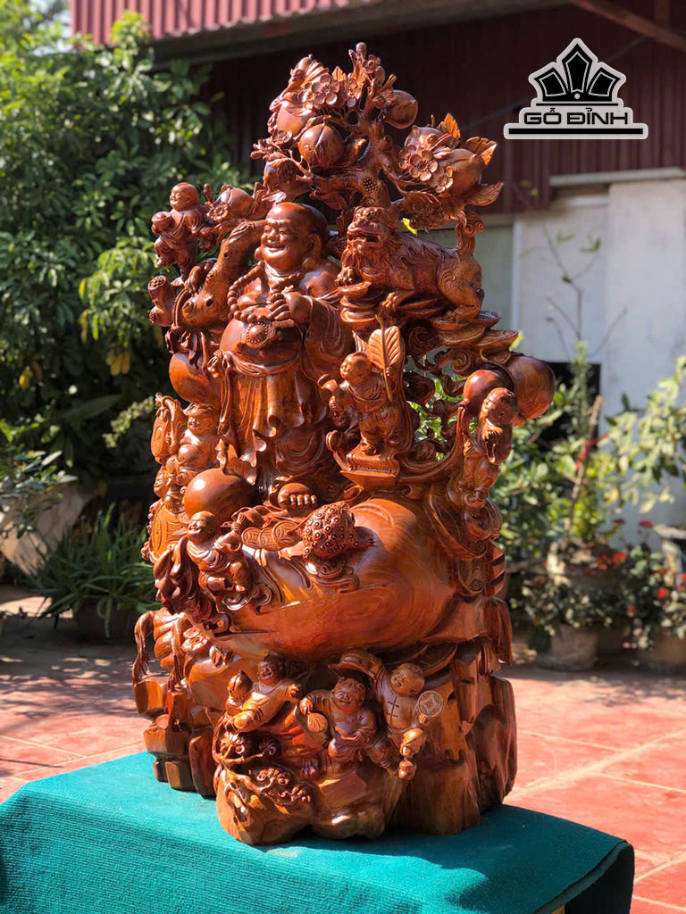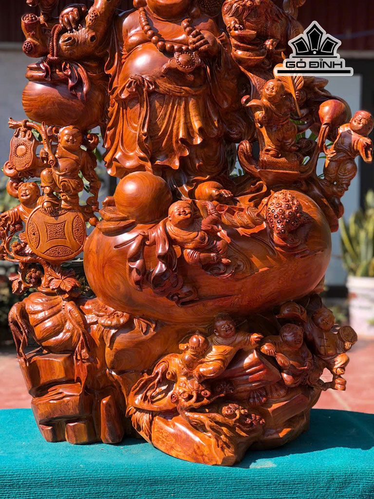Tượng Phật Di Lặc Cửu Phúc Gỗ Hương Cao 128 Ngang 82 Sâu 45 (cm)