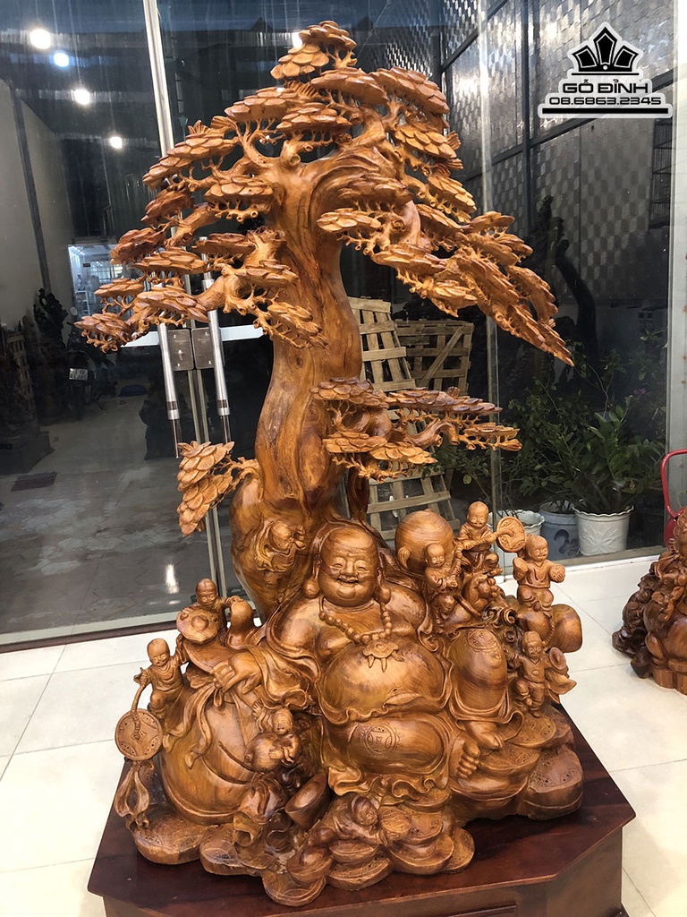 Tượng Phật Di Lặc Cửu Phúc Gỗ Hương Cao 176 Rộng 90 Sâu 62 Cao Kỳ 30 (cm)
