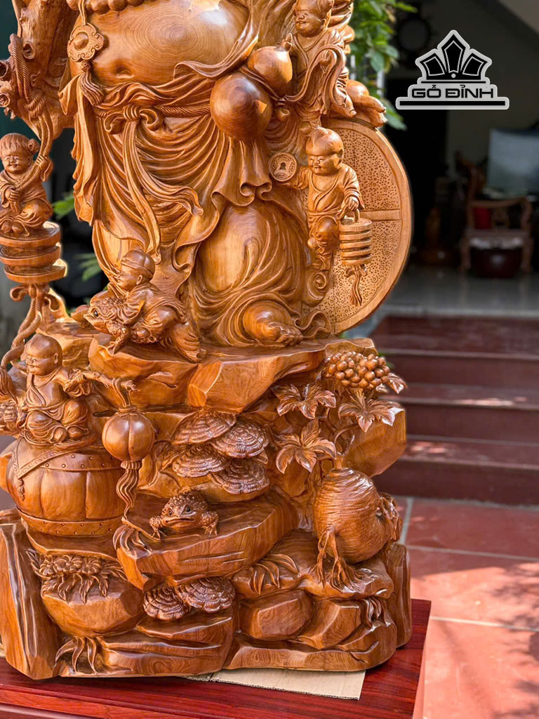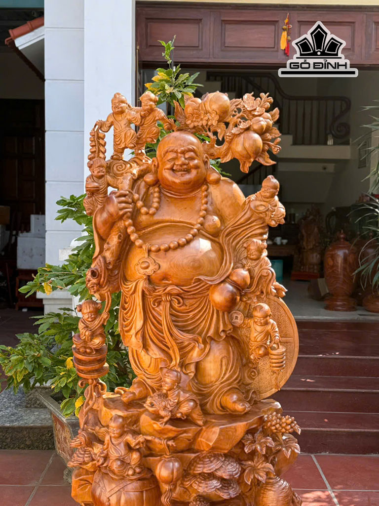 Tượng Phật Di Lặc Cửu Phúc Gỗ Ngọc Am Cao 147 - Cả Kỷ 183 Ngang 75 Sâu 42 (cm)