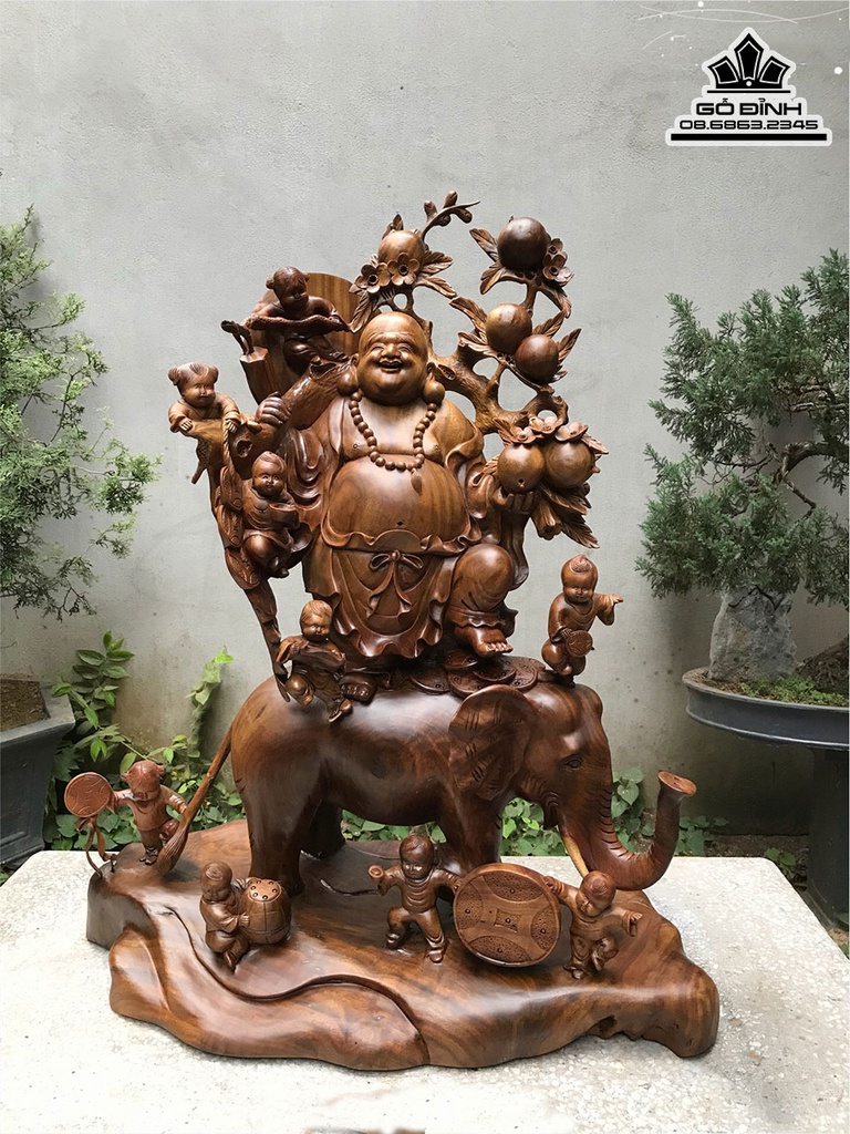 Tượng Phật Di Lặc Cửu Phúc Gỗ Xá Xị (GùHương) Cao 100 Ngang 80 Sâu 40 (cm)