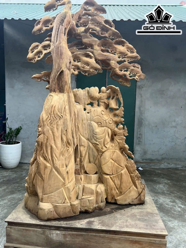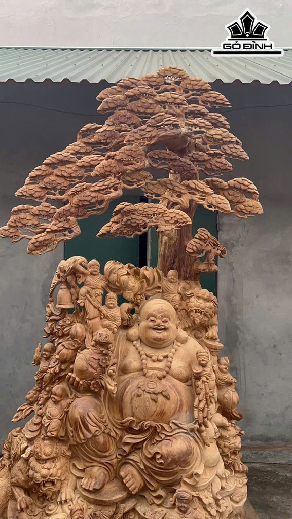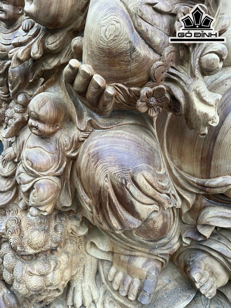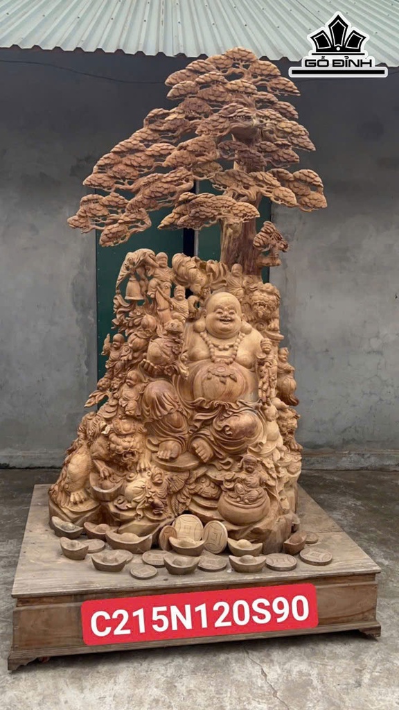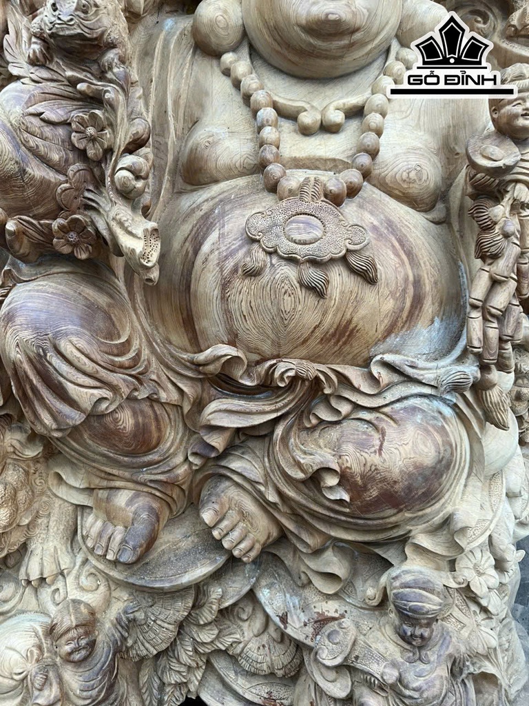 Tượng Phật Di Lặc Cửu Phúc Ngồi Tùng Gỗ Ngọc Am Cao 215 Ngang 120 Sâu 90 (cm)