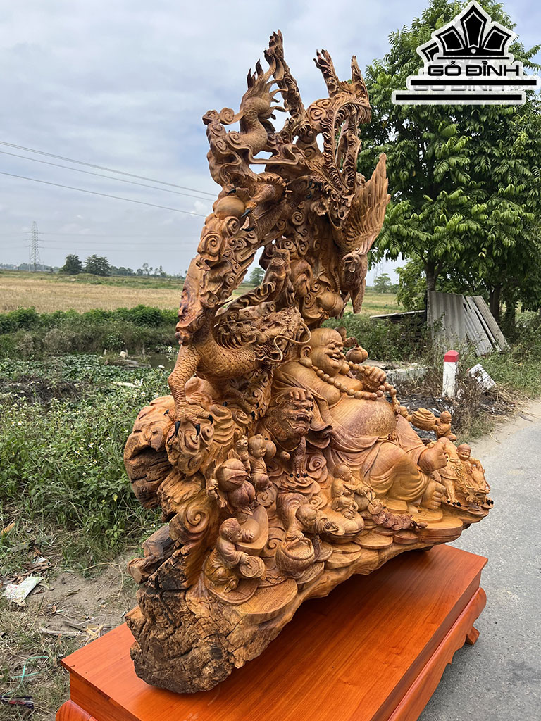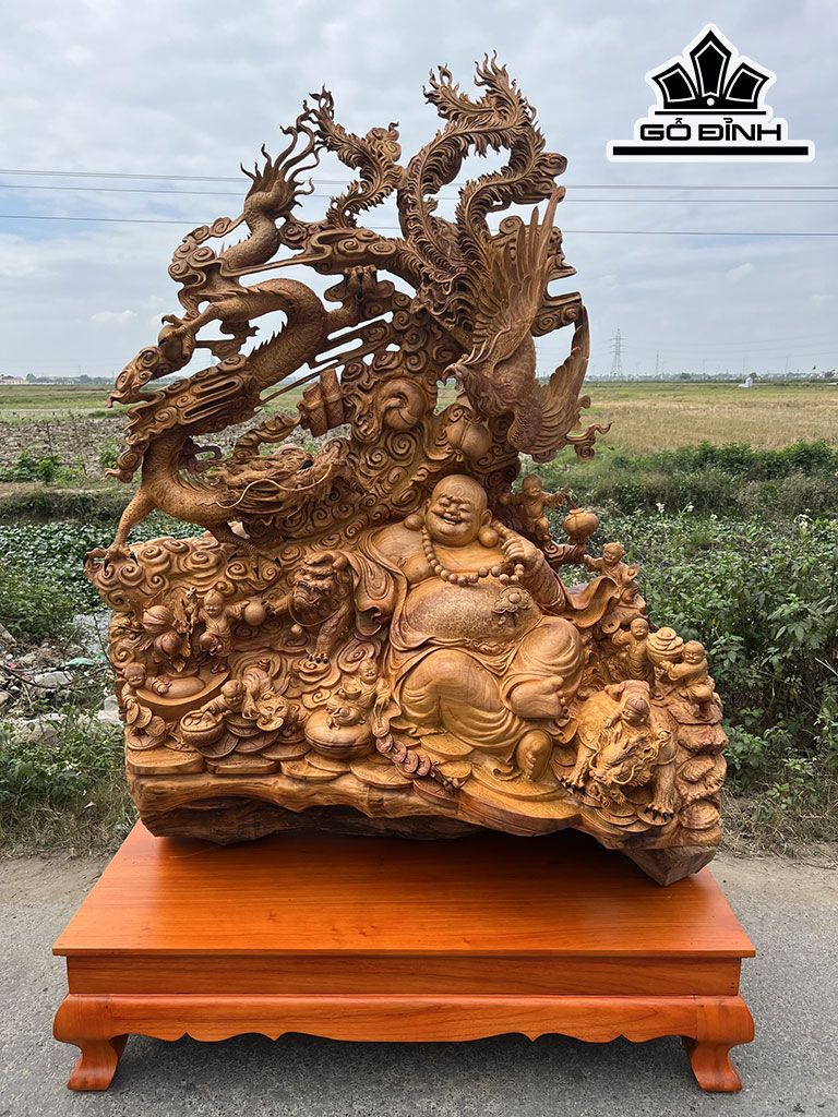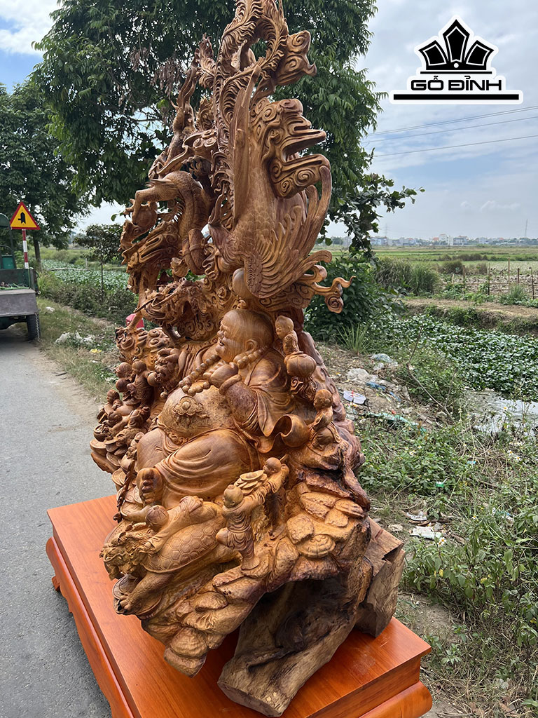 Tượng Phật Di Lặc Cửu Phúc Thuần Tứ Linh Cao 172 Ngang 129 Sâu 72 (cm)