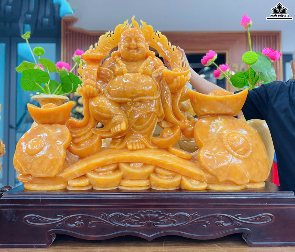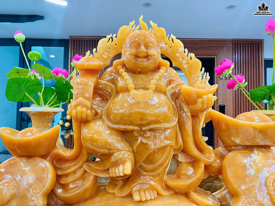 Tượng Phật Di Lặc Đá Ngọc Hoàng Long Cao Cả Đế 116 Ngang 96 - Riêng Tượng Cao 105 Ngang 76 Sâu 18 (cm)