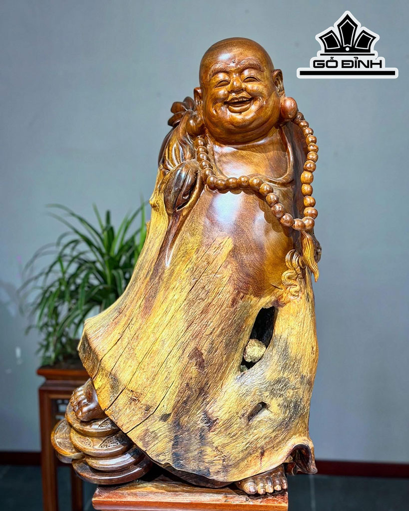 Tượng Phật Di Lặc Dáng Thế Gỗ Hương Cao 70 Ngang 40 Sâu 38 (cm)