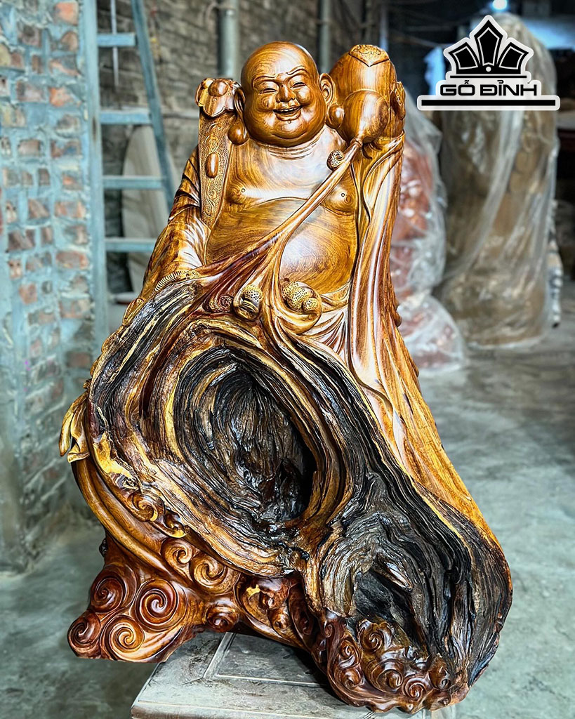 Tượng Phật Di Lặc Dáng Thế Gỗ Hương Cao 78 Ngang 54 Sâu 32 (cm)