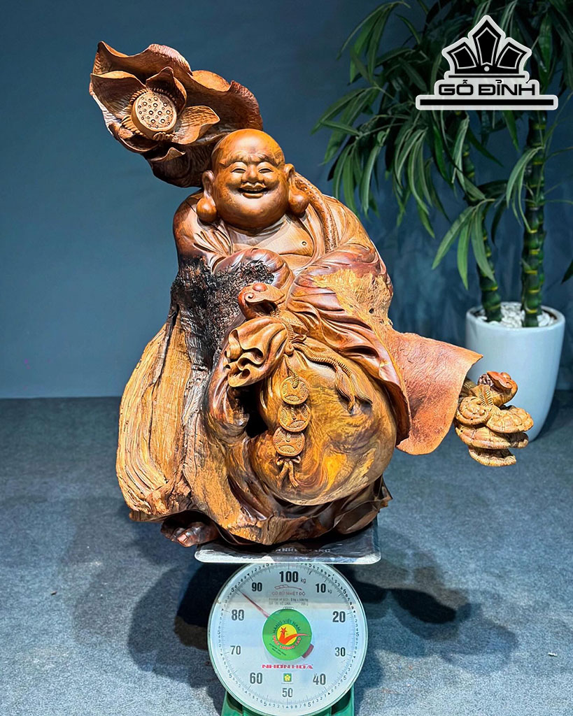 Tượng Phật Di Lặc Dáng Thế Gỗ Hương Cao 86 Ngang 73 Sâu 47 (cm)