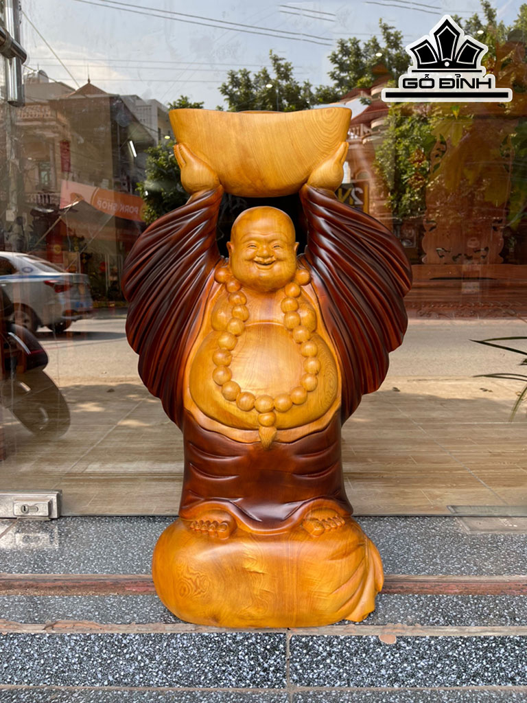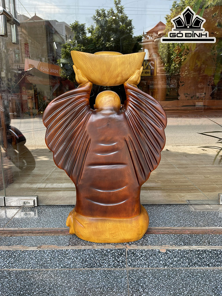 Tượng Phật Di Lặc Dâng Vàng Gỗ Pơ Mu Cao 70 Ngang 42 Sâu 17 (cm)