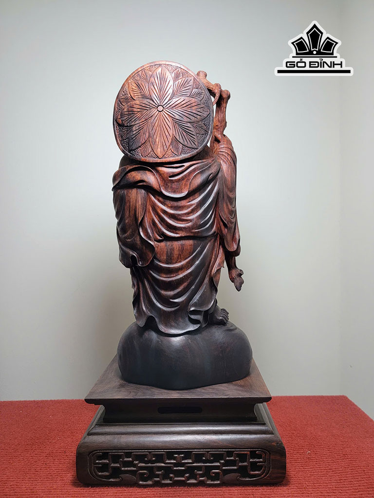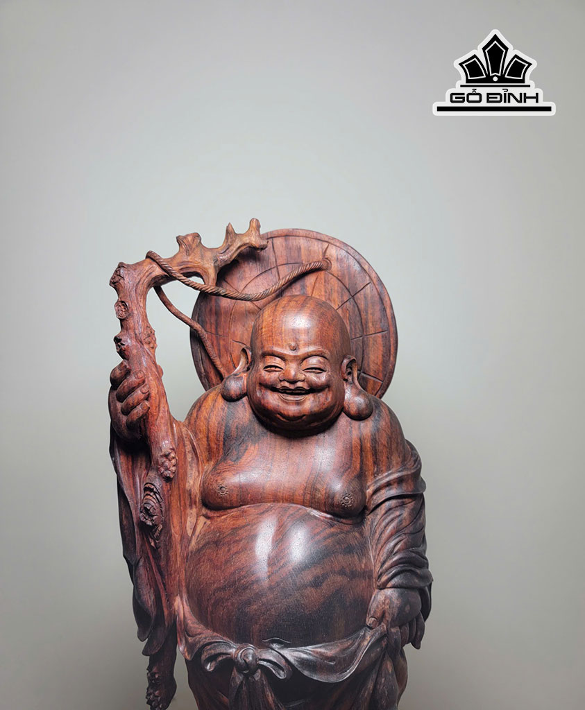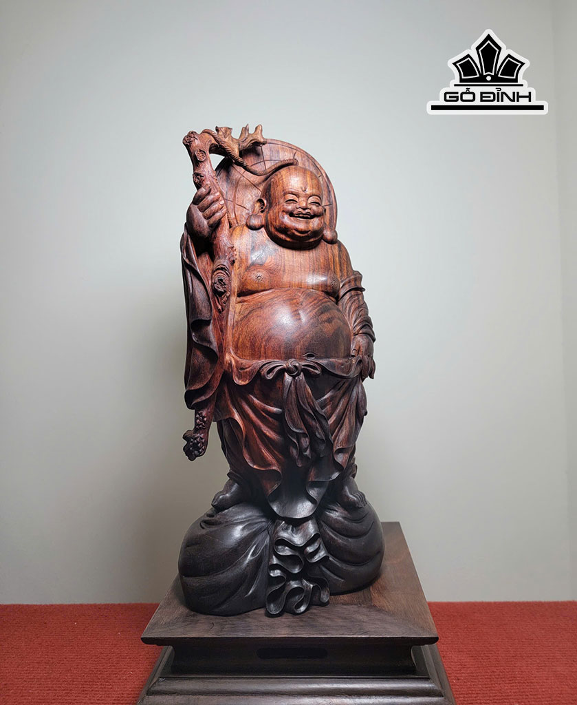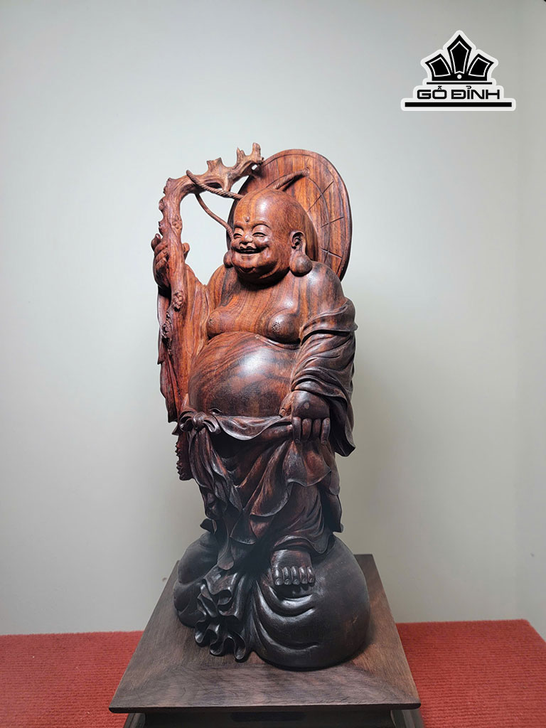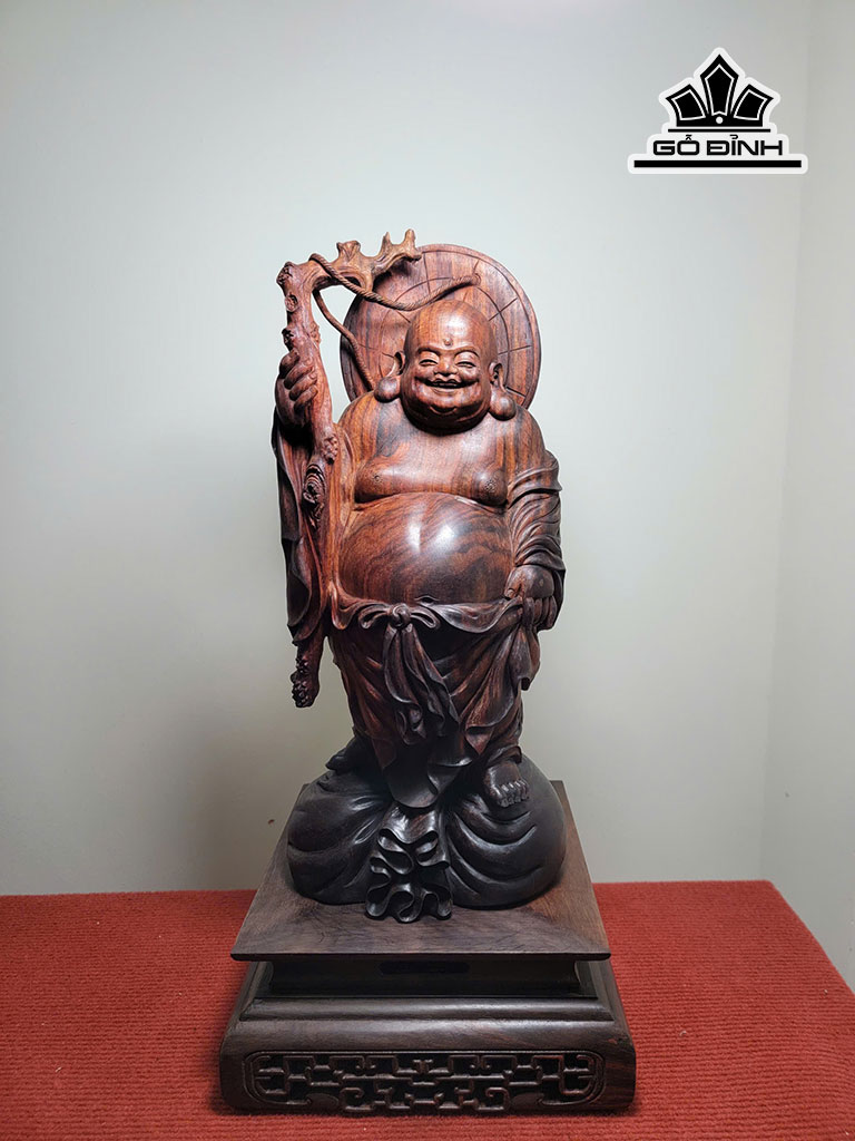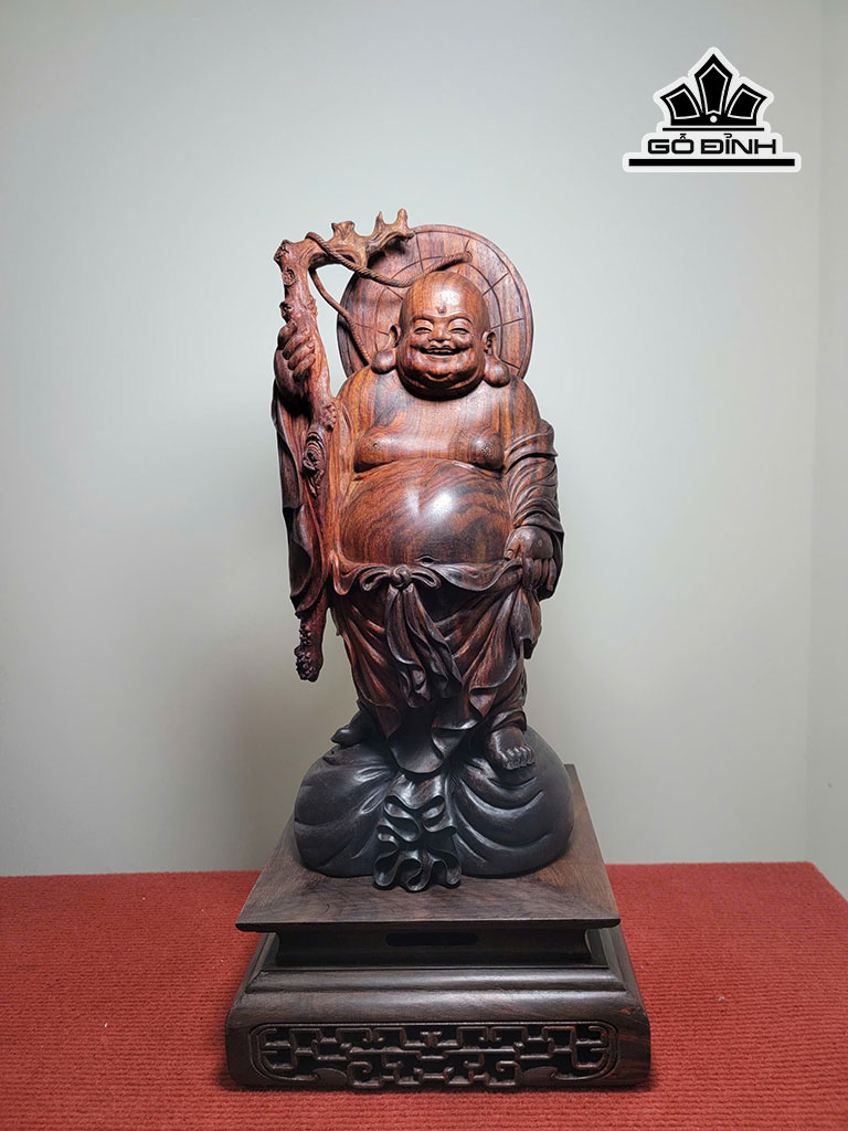 Tượng Phật Di Lặc Đứng Bao Tài Lộc Gỗ Trắc Cao 36 Ngang 18 Sâu 14 (cm)