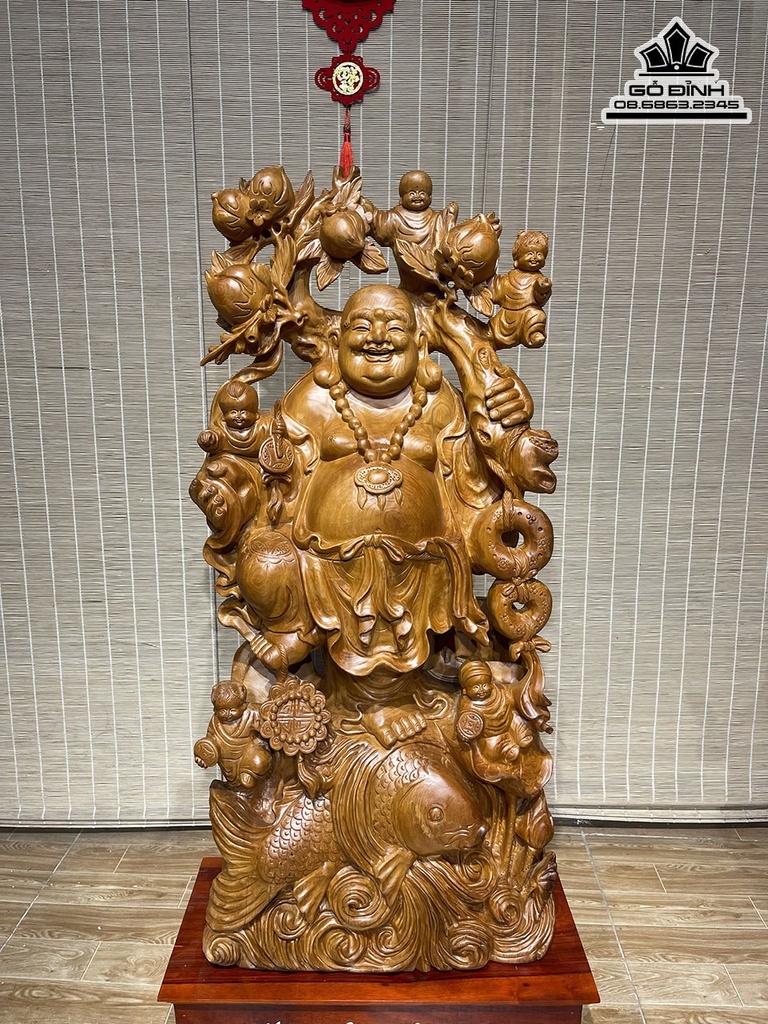Tượng Phật Di Lặc Đứng Cá Chép Gỗ Ngọc Am