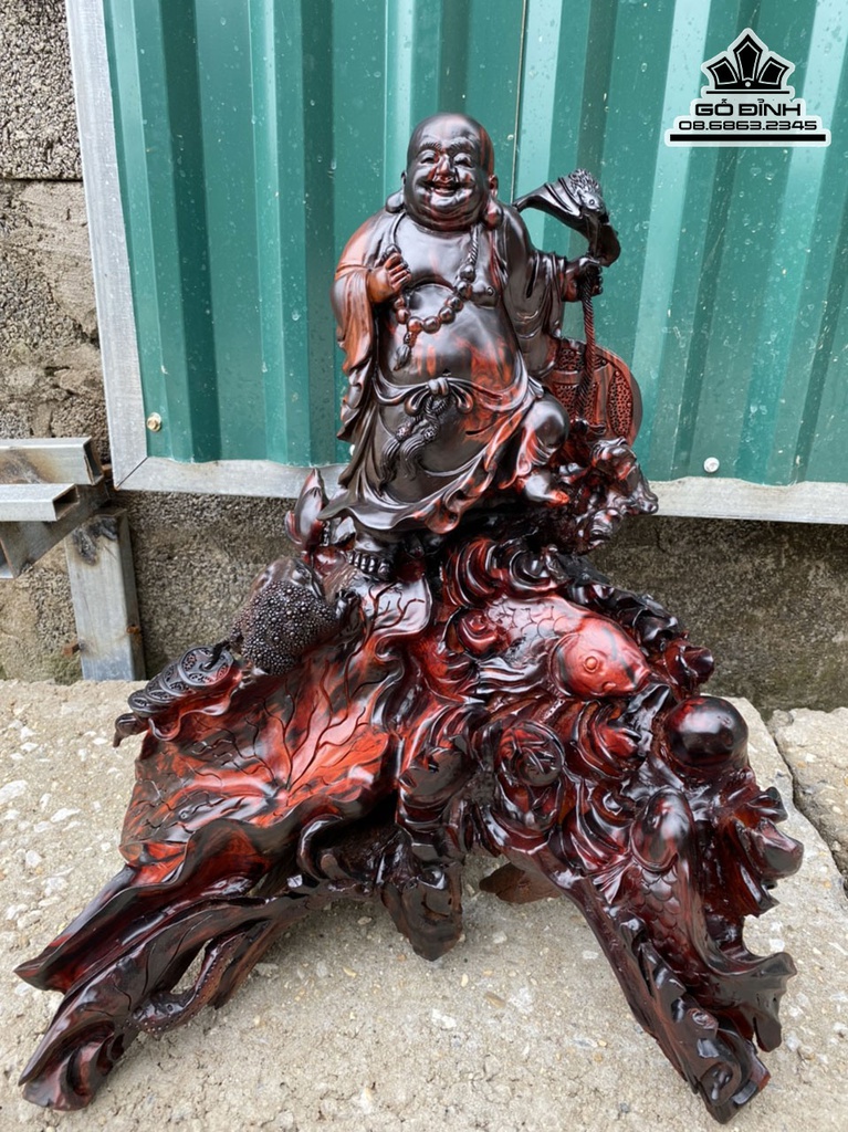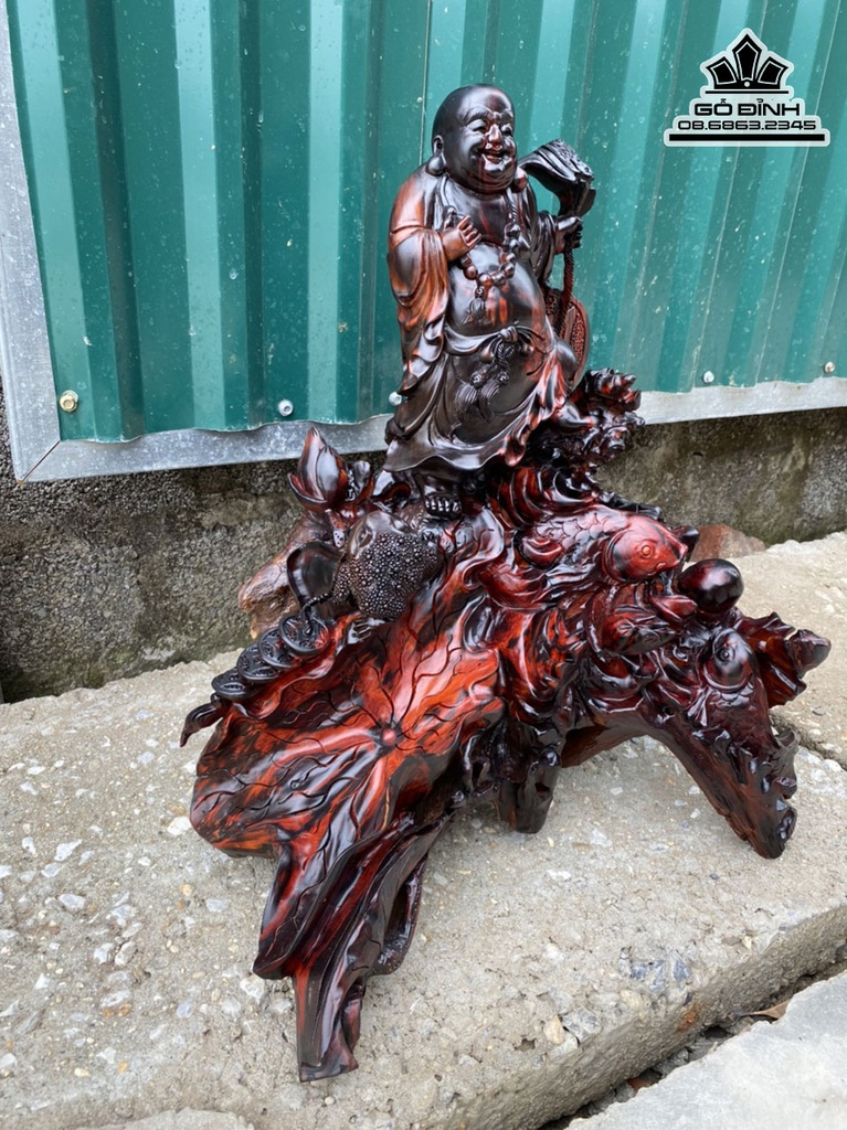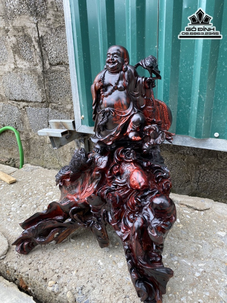 Tượng Phật Di Lặc Đứng Cá Chép Gỗ Trắc Cao 55 Ngang 46 Sâu 48 (cm)