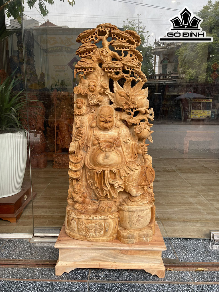 Tượng Phật Di Lặc Đứng Cây Tùng Gỗ Ngọc Am Cao 103 Ngang 48 Sâu 20 (cm)