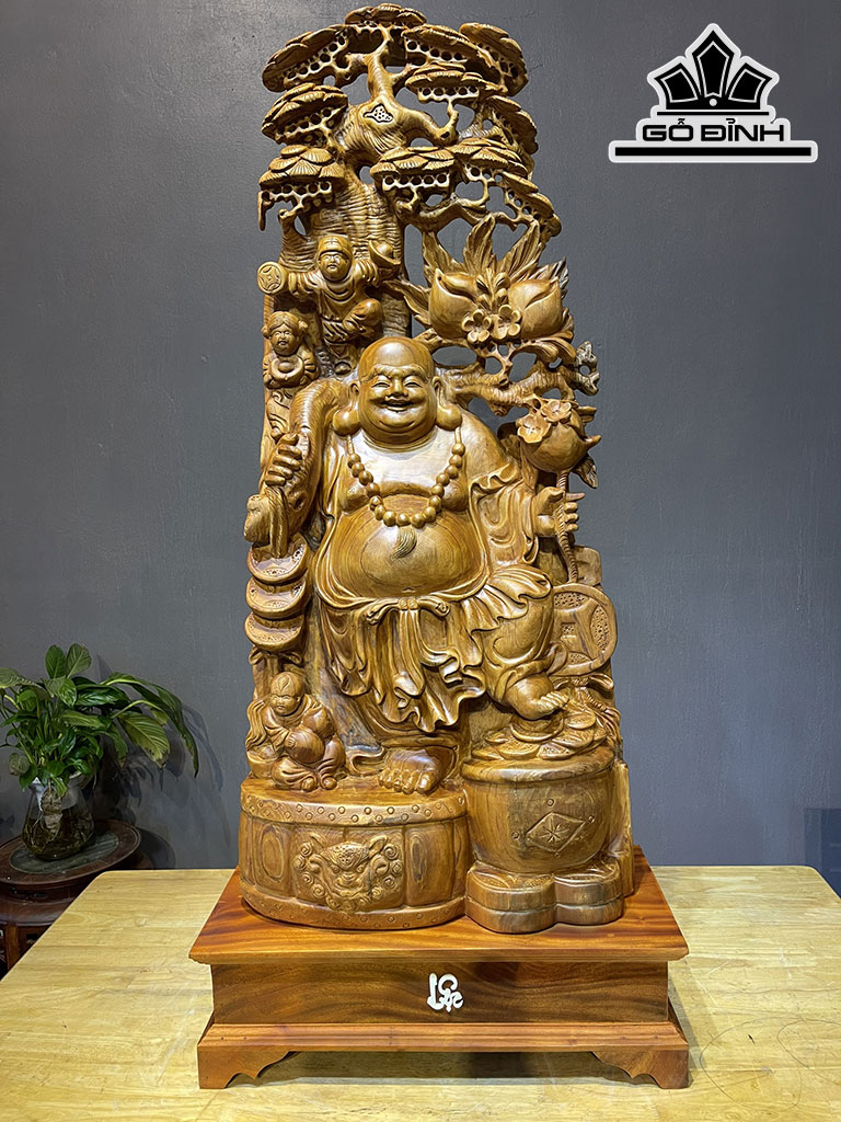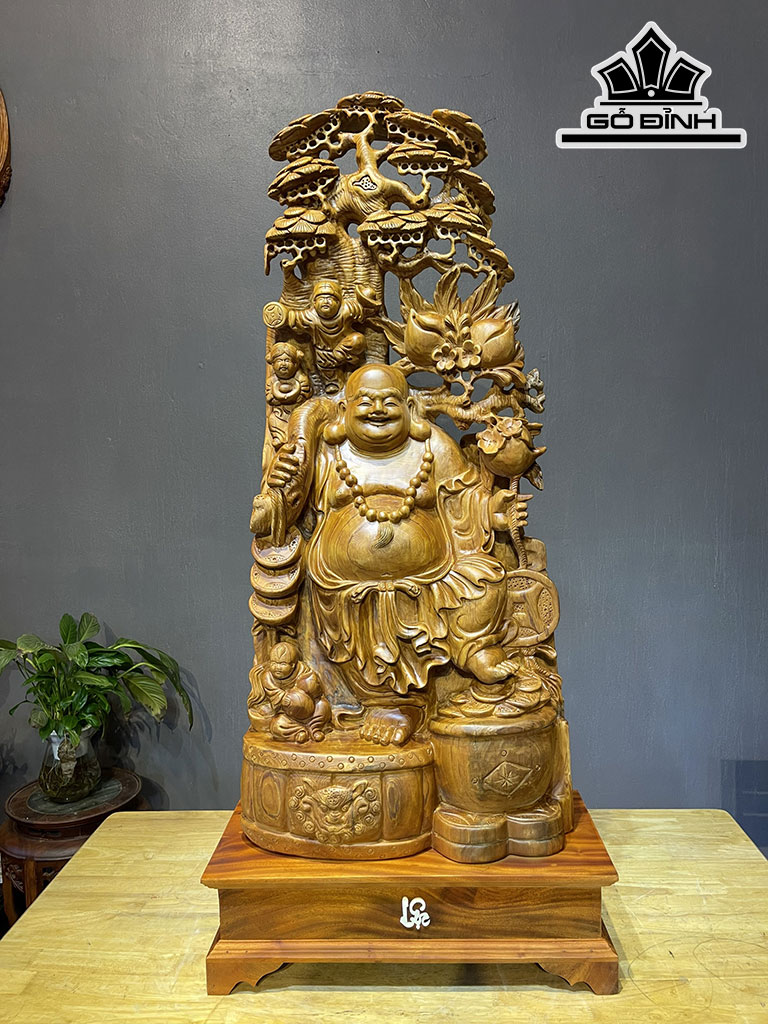 Tượng Phật Di Lặc Đứng Cây Tùng Gỗ Ngọc Am Cao 103 Ngang 48 Sâu 20 (cm)