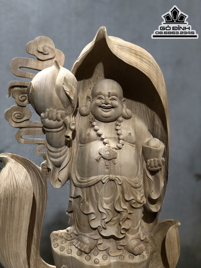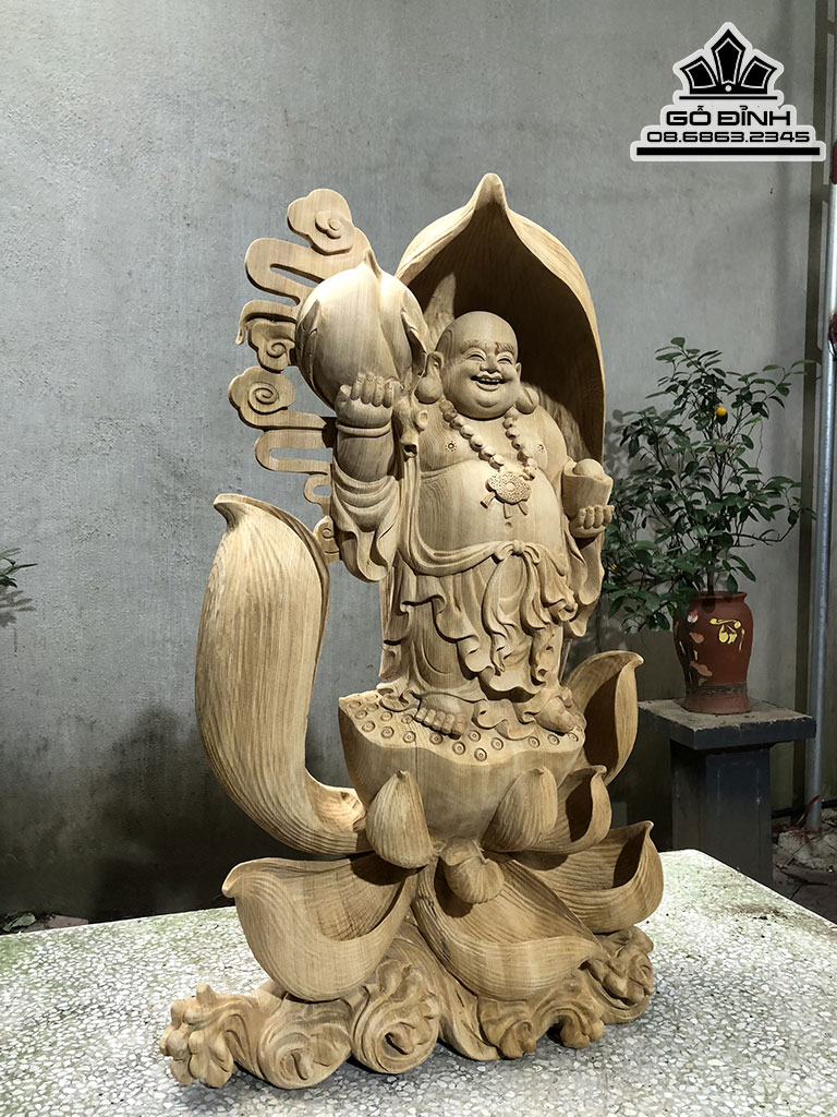 Tượng Phật Di Lặc Đứng Đài Sen Gỗ Ngọc Am